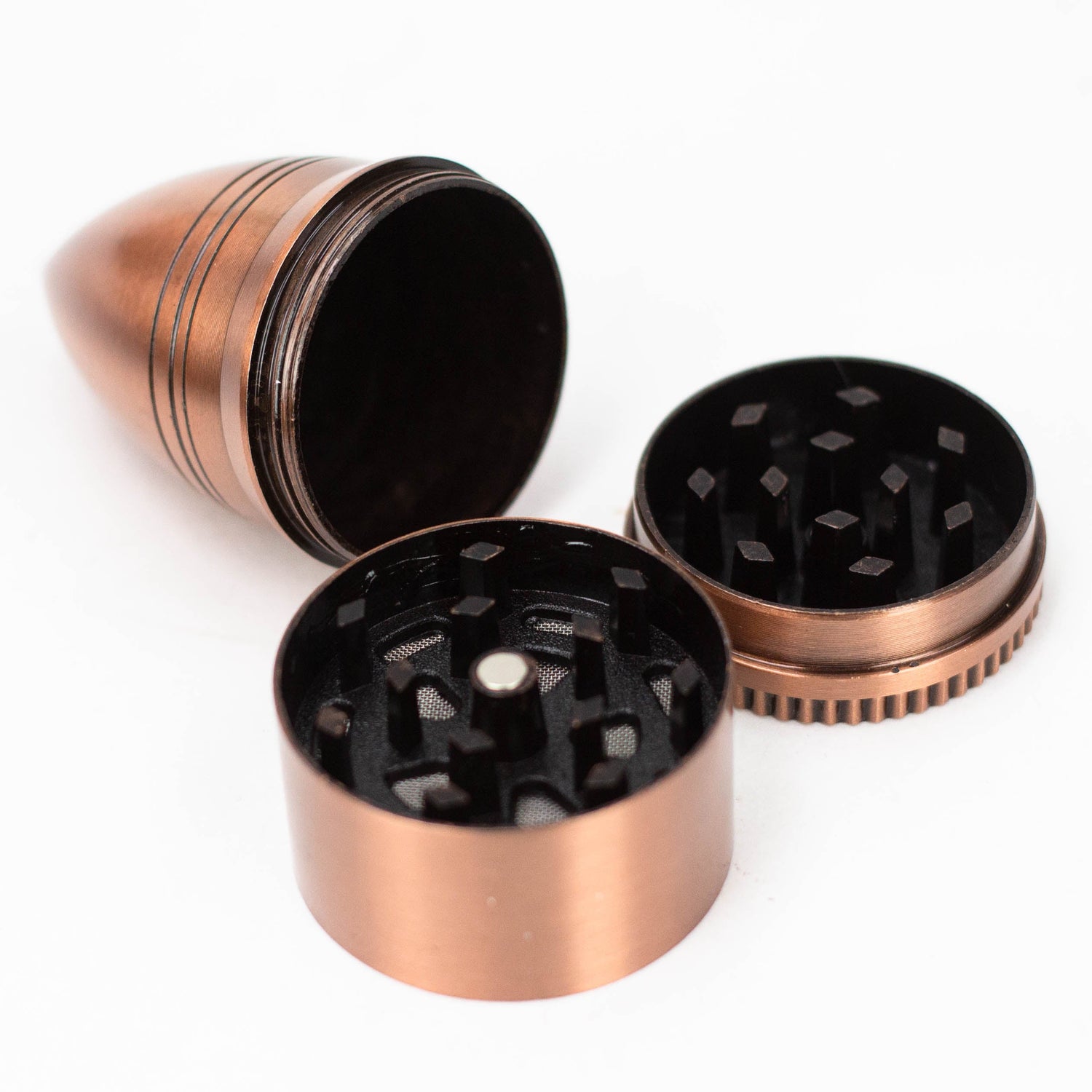 - Stainless steel micro-screen for kief filtering; kief scraper included