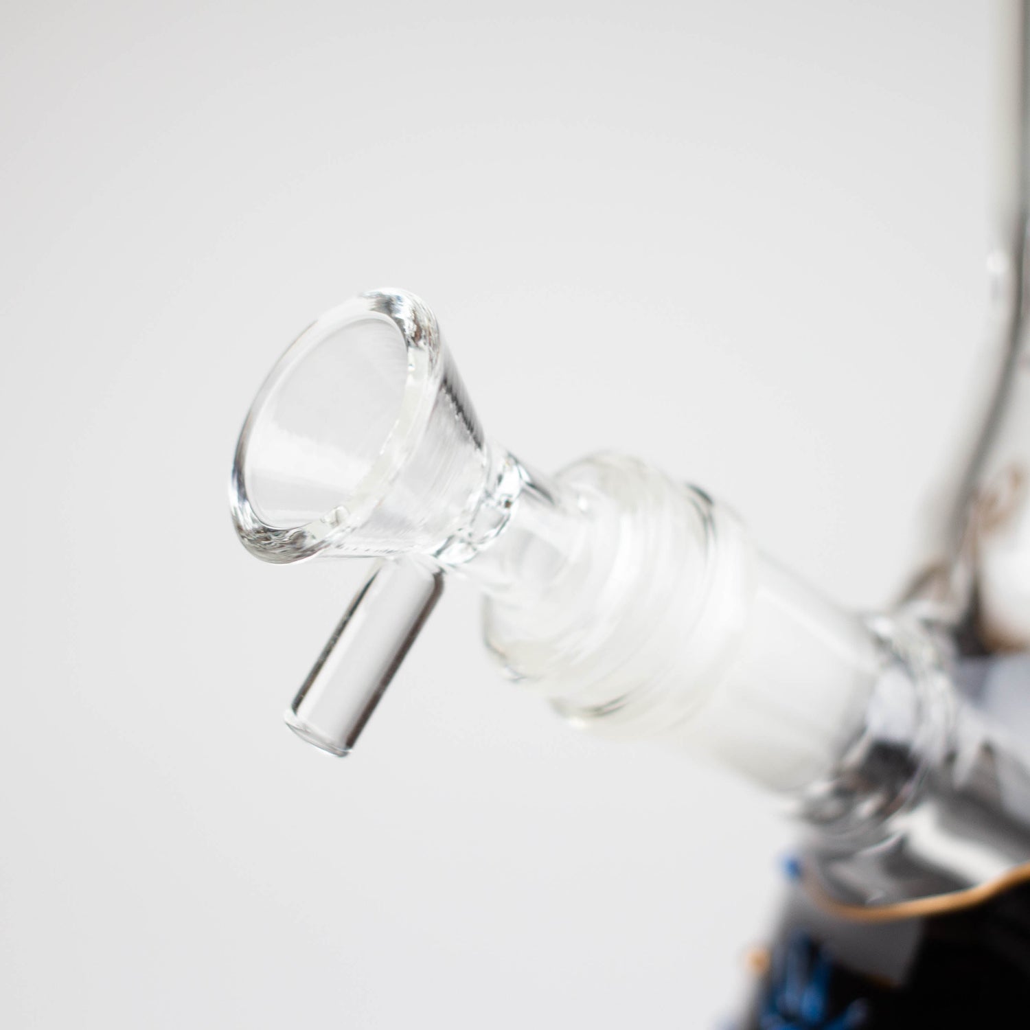 Introducing the 10" 3D Glass Bong with a captivating sky design. With a 5.0mm thickness, this bong features a 3 pinched ice catcher and a thick bowl perfect for a 14mm female joint. The 4" downstem adds an extra touch to enhance your smoking experience. This bong comes in 3 pieces for easy assembly.