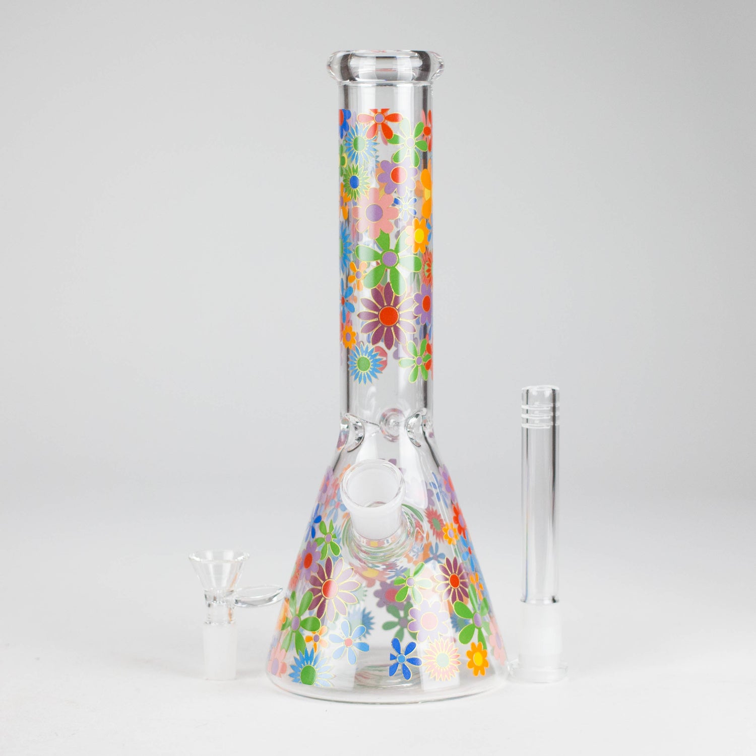 Bring beauty and function together with the 10″ Flower Design Glass Beaker Bong. Compact yet powerful, this piece features a classic beaker base for stability and smooth filtration, decorated with elegant flower patterns that make every session stylish.