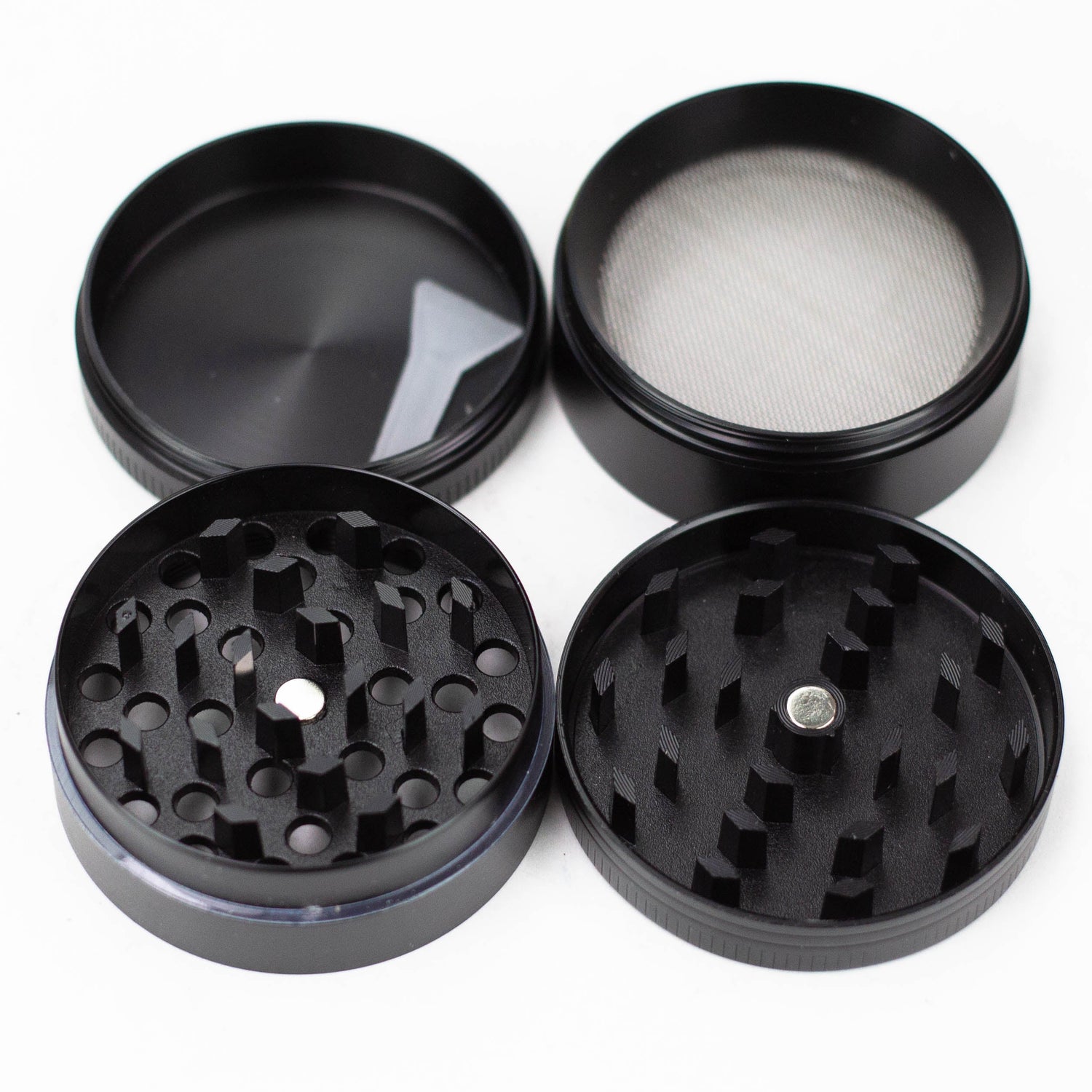 - Stainless steel micro-screen for kief filtering; kief scraper included