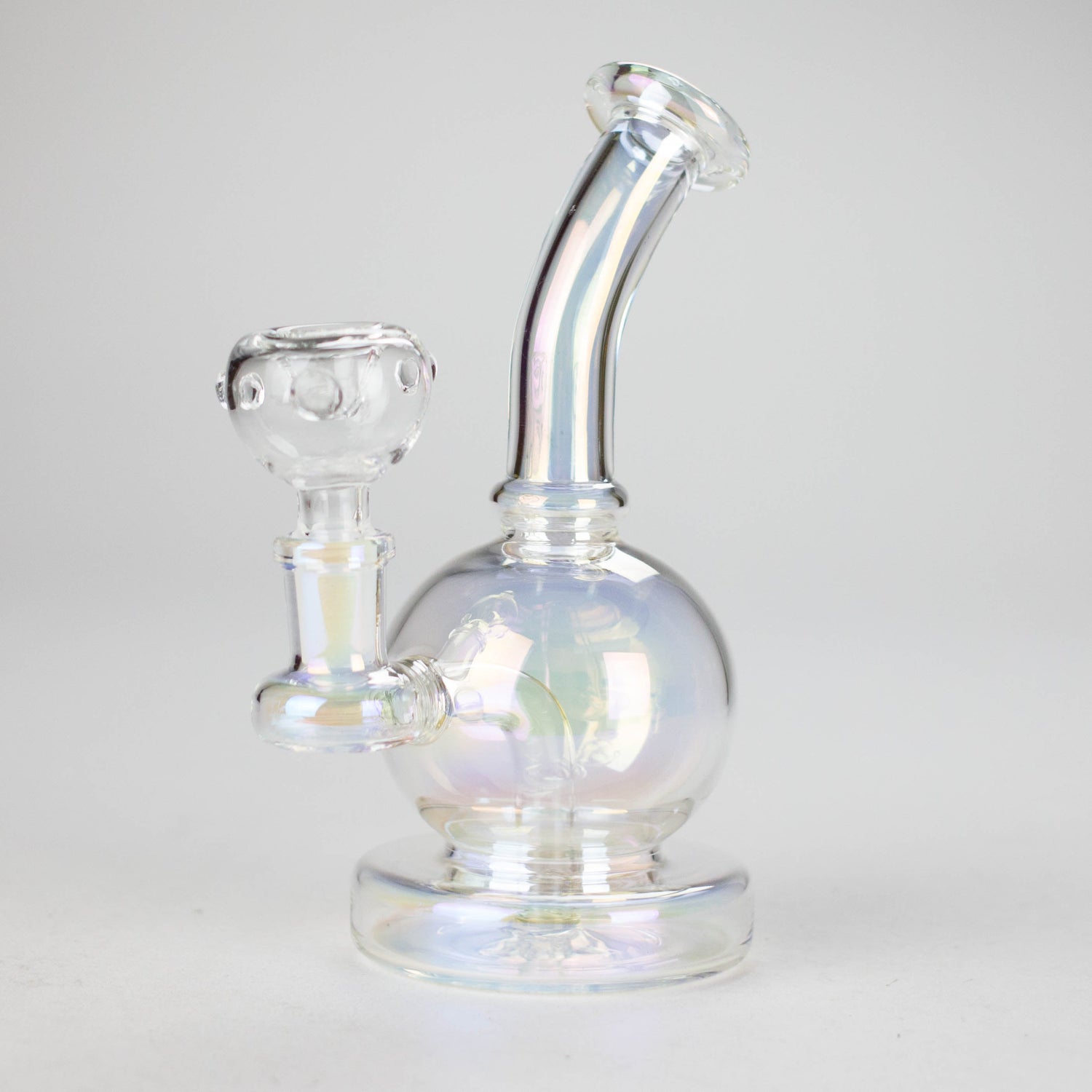 Add a sleek and modern touch to your collection with this 7" Solid Color Electroplate Glass Bong. Featuring a vibrant, metallic finish and compact design, this piece is both eye-catching and functional—perfect for on-the-go or daily use.