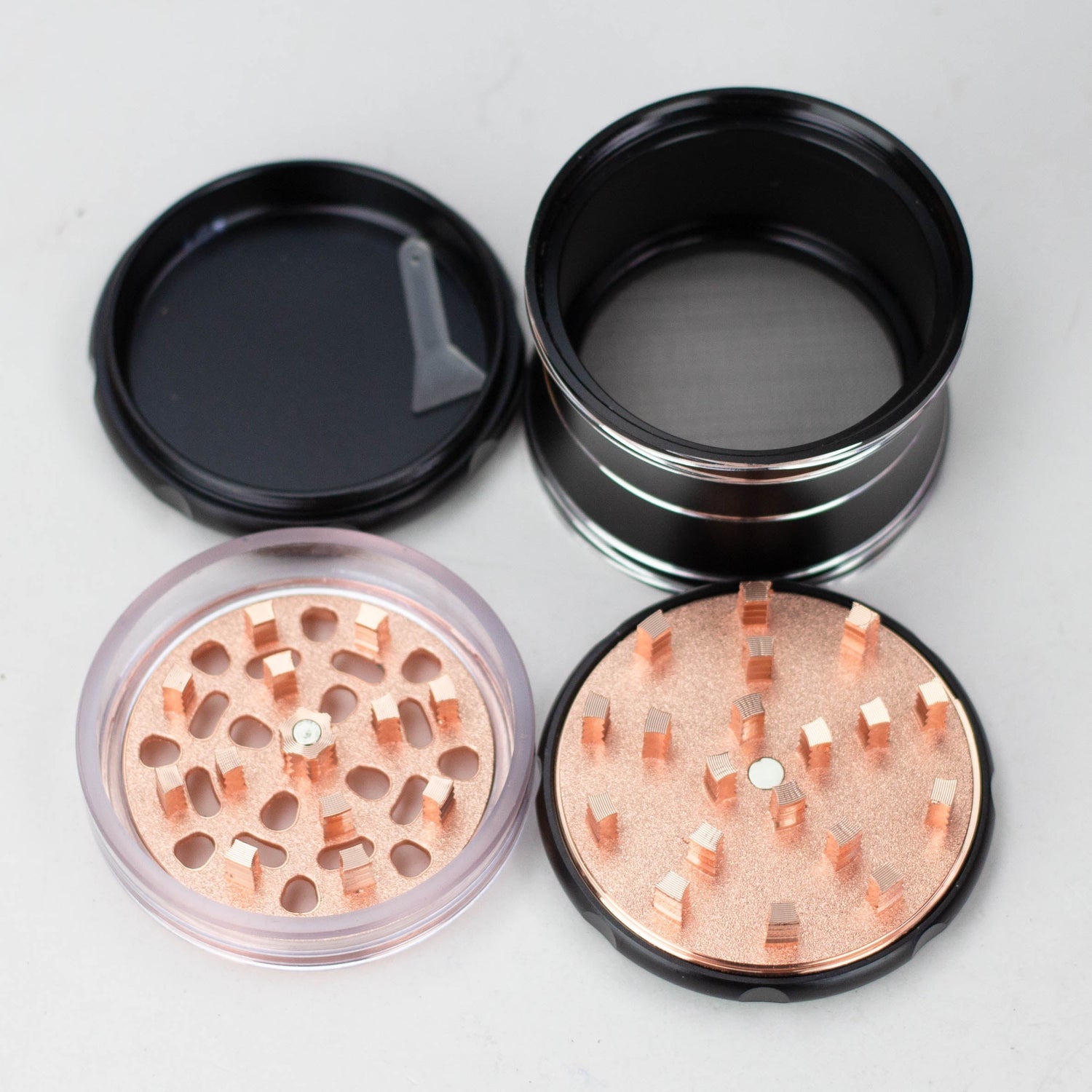 - Stainless steel micro-screen for kief filtering; kief scraper included