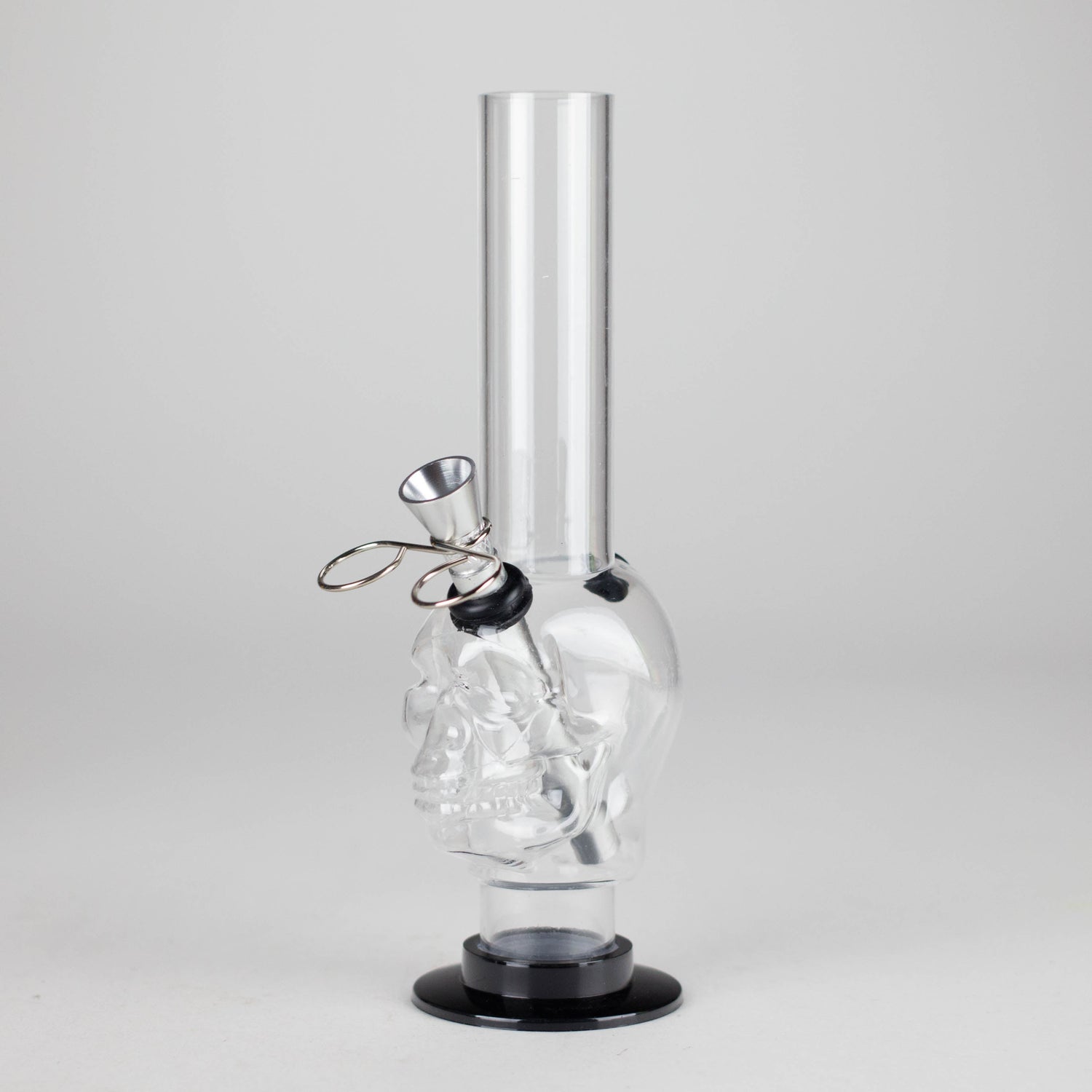 Add bold style to your smoking experience with this 8" Skull Shape Acrylic Water Pipe. Crafted from durable acrylic, this eye-catching piece combines function and personality. The detachable base and standardized metal bowl, slide, and rubber grommet make cleaning and customization easy.