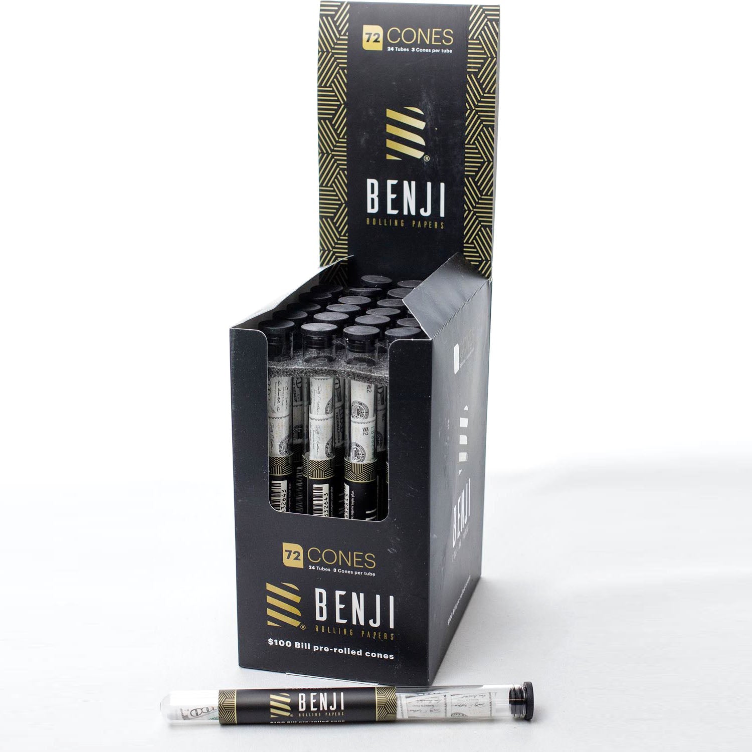 Introducing, for the first time ever, BENJI pre-rolled cones. The finest $100 bill print cones.The Benji Pre-Rolled Cones are intended to provide an easy way to pack your dry herb and tobacco into a rolling paper