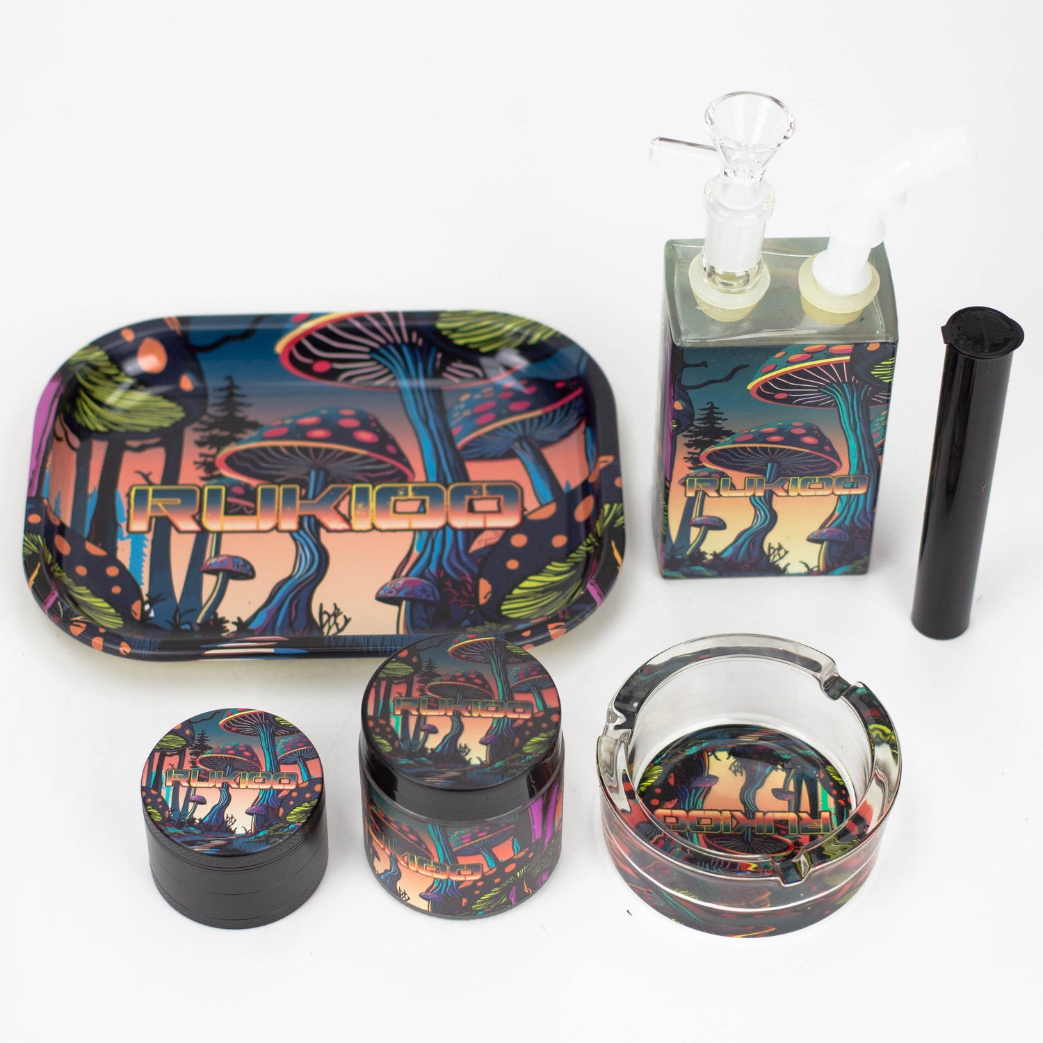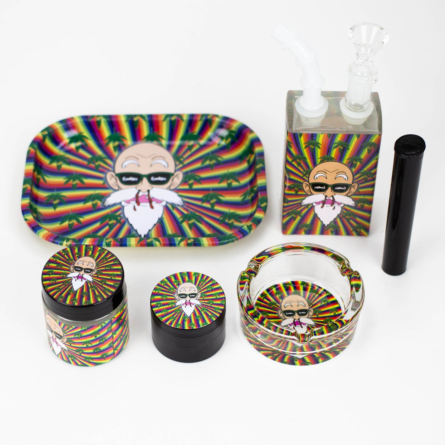 Indulge in a royal experience with this 7-Piece Smoking Gift Set! Relish with this deluxe box featuring a Glass bong, Rolling Tray, Glass Jar, 4-Part Metal Grinder, Pre-Roll Joint Tube, Glass Ashtray, and a carry bag with a handle for convenience. Create a cloud of deliciousness in a memorable way !