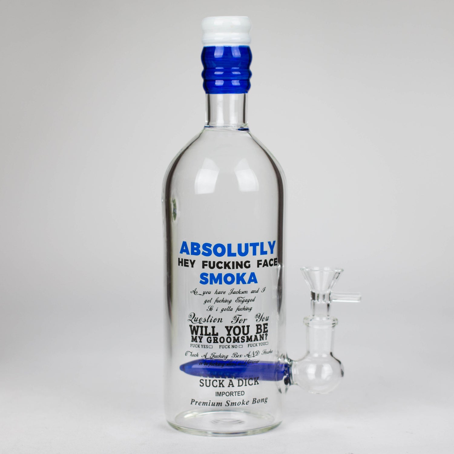 The Liquor Bottle Glass Bong is uniquely designed that parody popular alcohol brands. Handcrafted with durable glass, each piece combines functionality with novelty appeal, making them ideal for collectors or as conversation starters. Perfect for anyone looking for a creative and fun smoking experience.