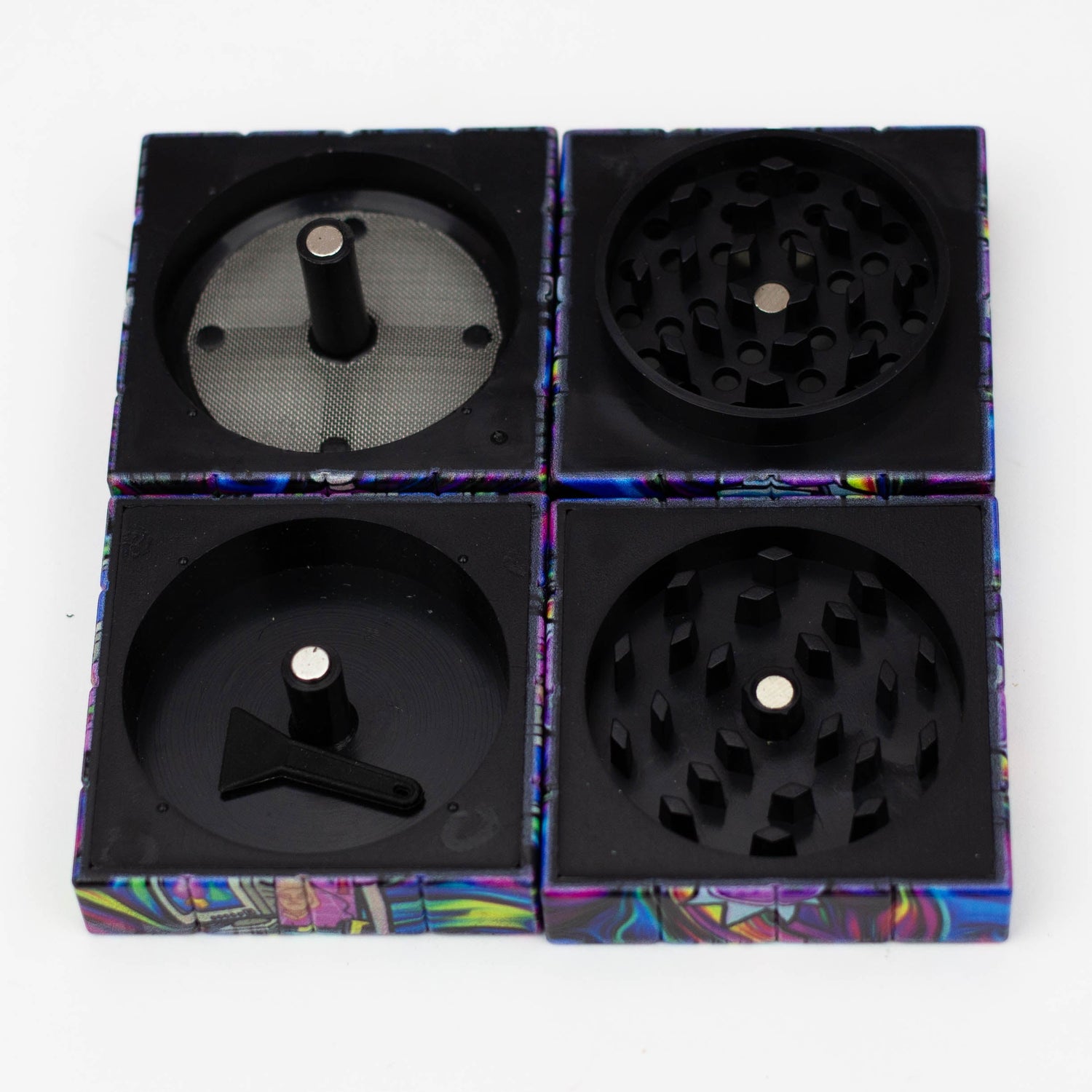 Fashion Cube design with cartoon printed : Classic 4 piece, 3 chamber structure easy use for grinding, storage, and filtration of pollen.New Rubik's Cube design provides increased quality relaxing.