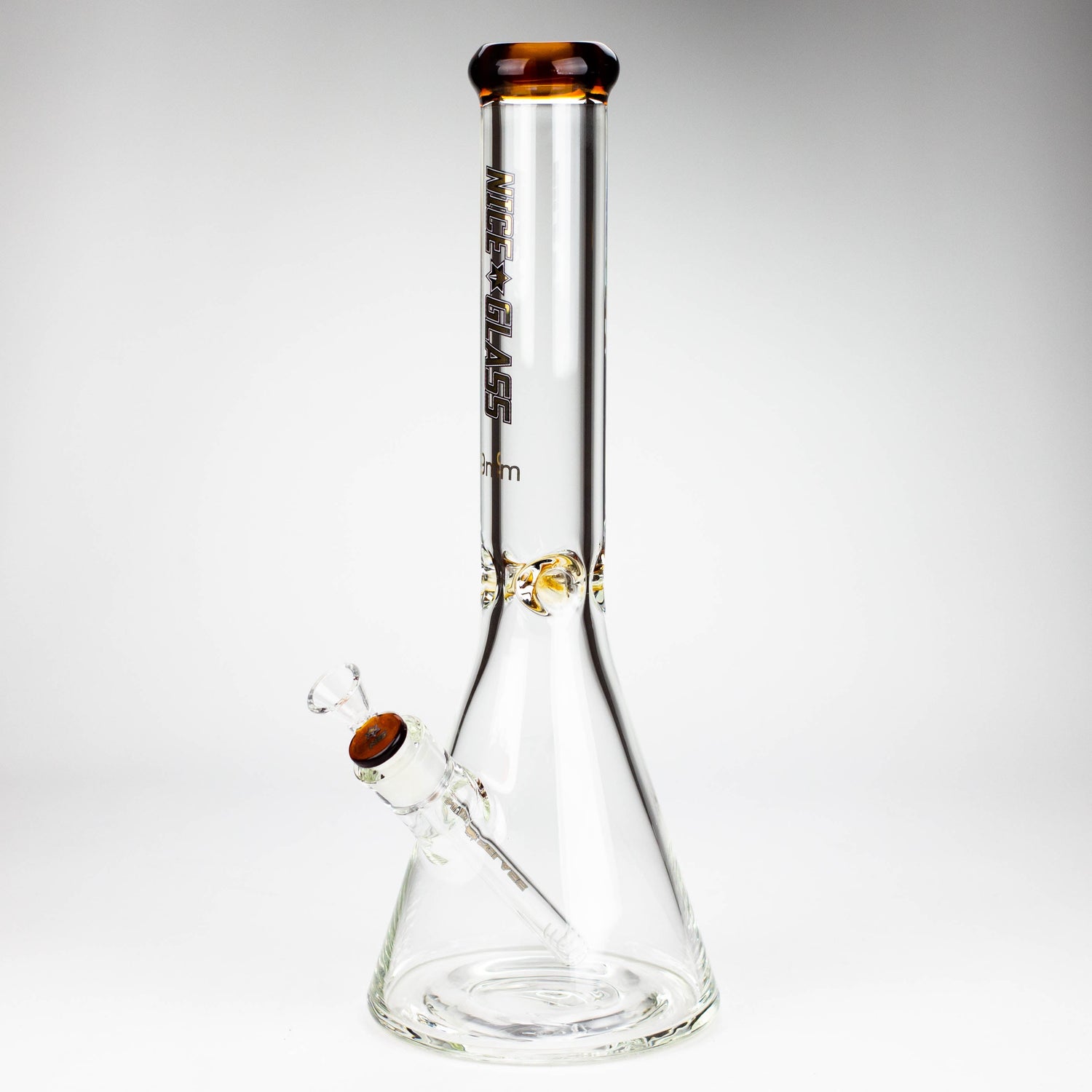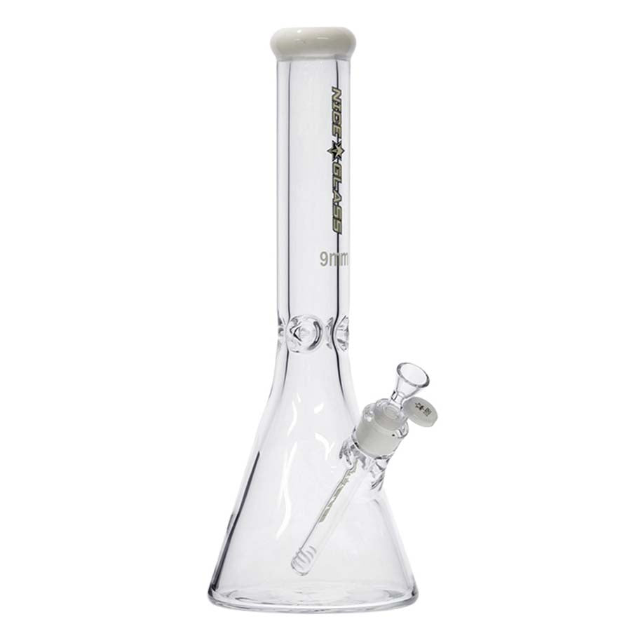 This beaker bong comes equipped with ice notches, herb bowl, and slitted downstem. Made with high-quality borosilicate glass at 9mm thick, this robust Nice Glass is a lasting piece. Available in a range of colour accents.
