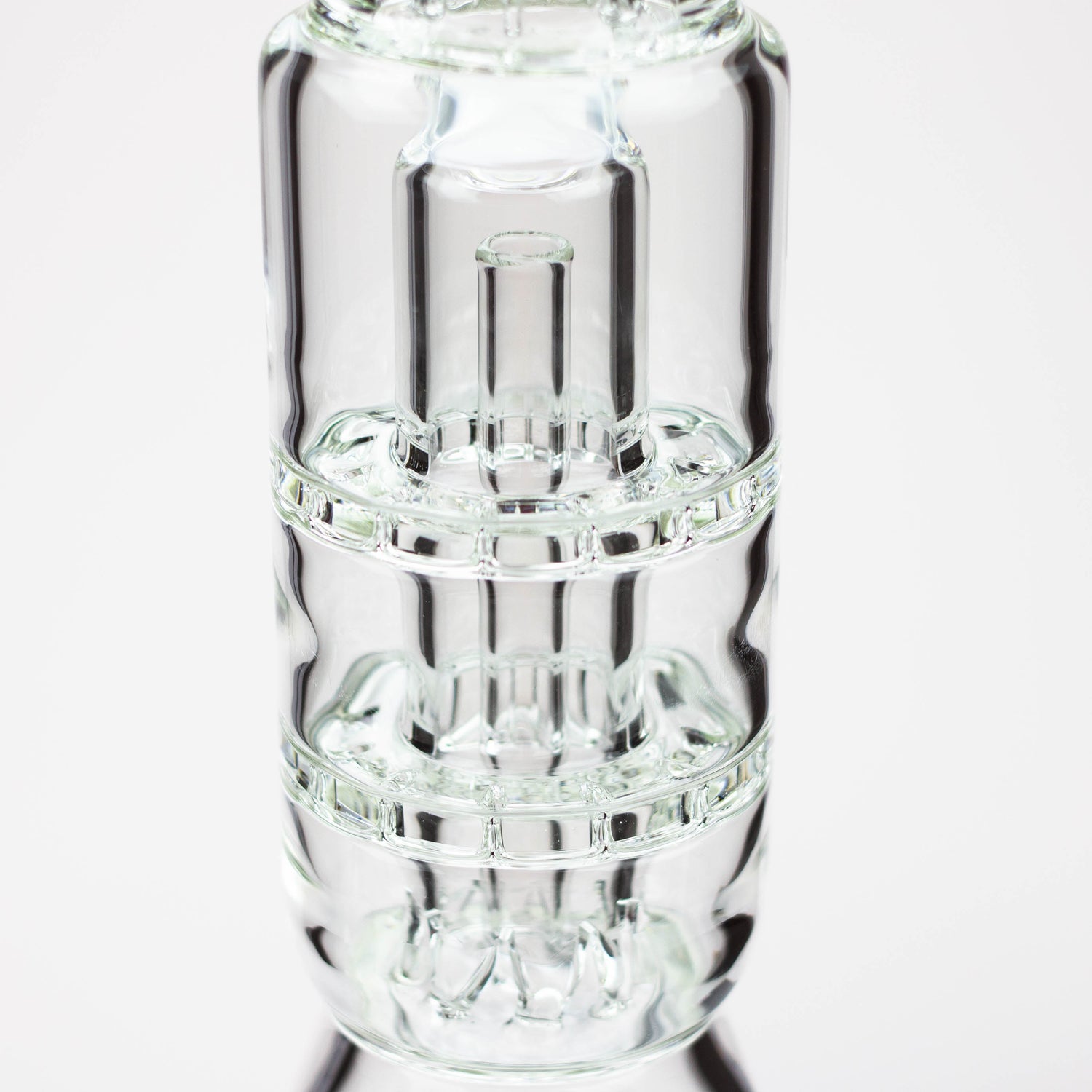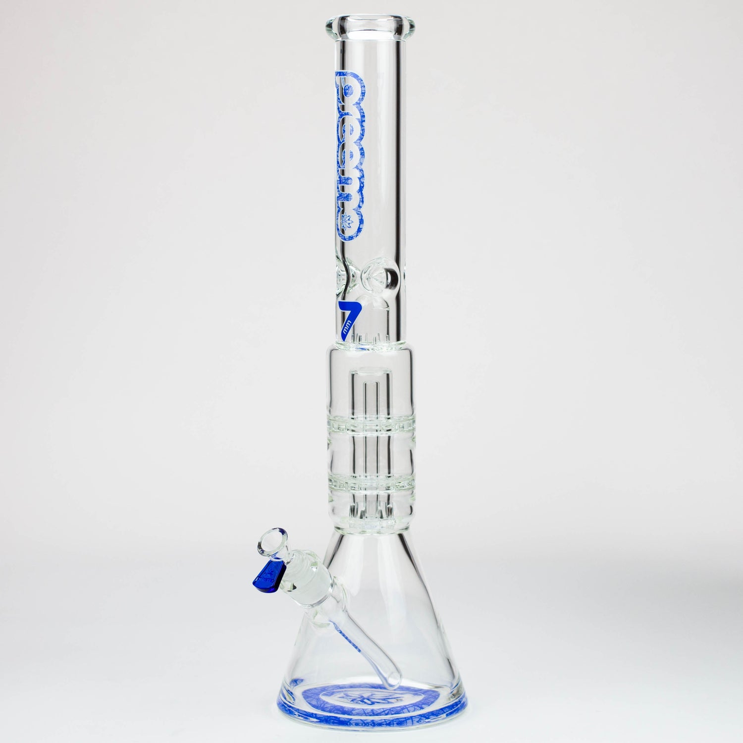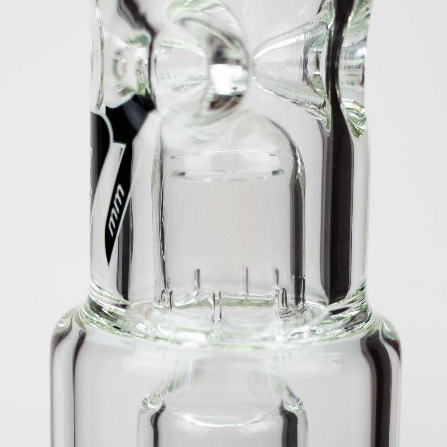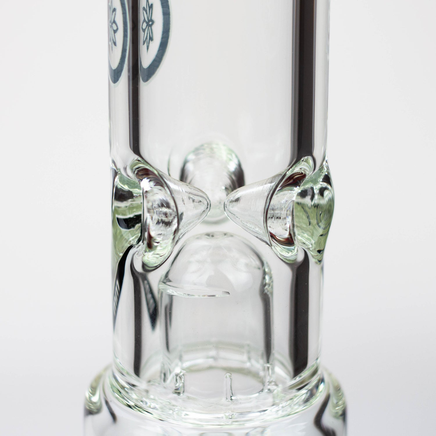 Tall beaker with dome over a double disc and bottom diffuser percolator chamber. Clear borosilicate glass with a range of logo color options.
