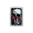 Backed by a fearsome skull, the Zippo wordmark appears in gothic font on this classic Street Chrome lighter in an eerie Color Image design. Comes packaged in a gift box. For optimal performance fill with Zippo lighter fuel.
