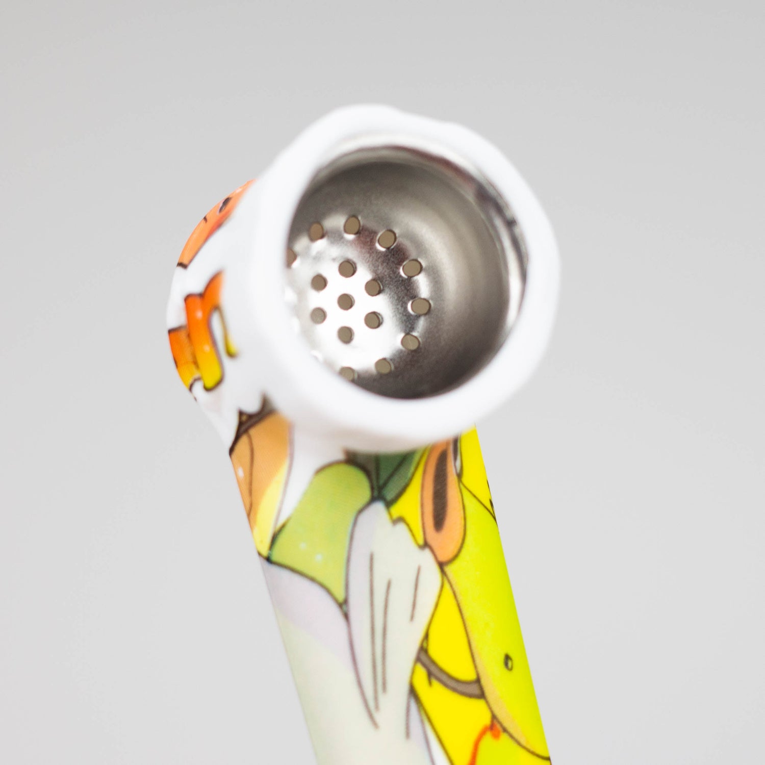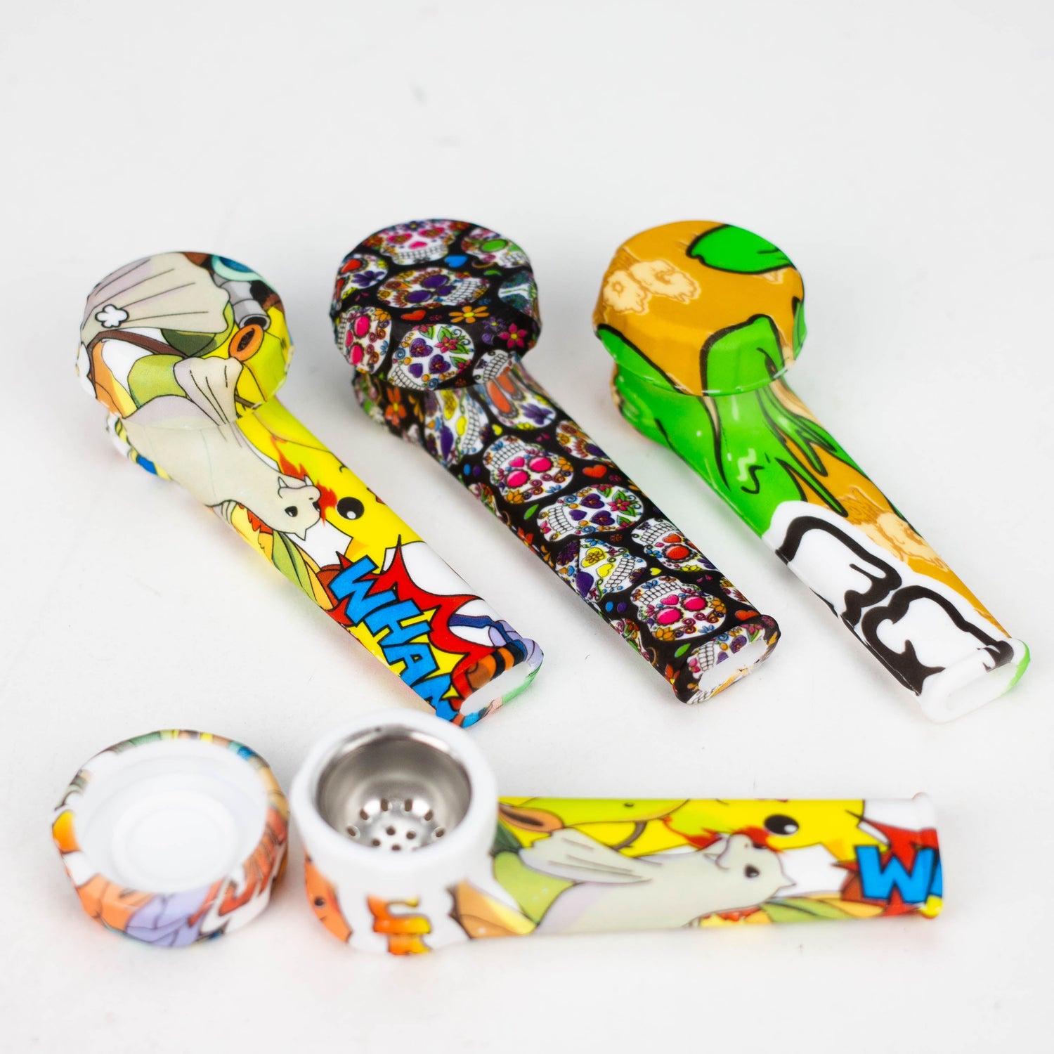 This silicone pipe offers a premium glass bowl instead of the traditional metal ones. Say goodbye to constantly replacing broken glass spoons. Made with durable silicone, this pipe will last a lifetime. It also includes a built-in stash jar at the bottom of the bowl for convenience. The built-in metal screen and easy-to-clean design make it a must-have. Available in assorted colors and measuring 3.4"x1.1"x0.9".