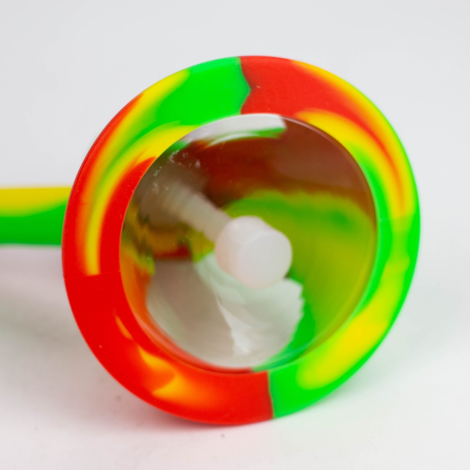 Experience the ultimate outdoor adventure with this 6" Silicone+Glass Rig-Assorted [175B]. Take it on-the-go with its lightweight and portable design, and impress your friends with its unique detachable rig. Made from non-toxic, heat-resistant, food-grade silicone, you can trust this pipe for your smoking needs.