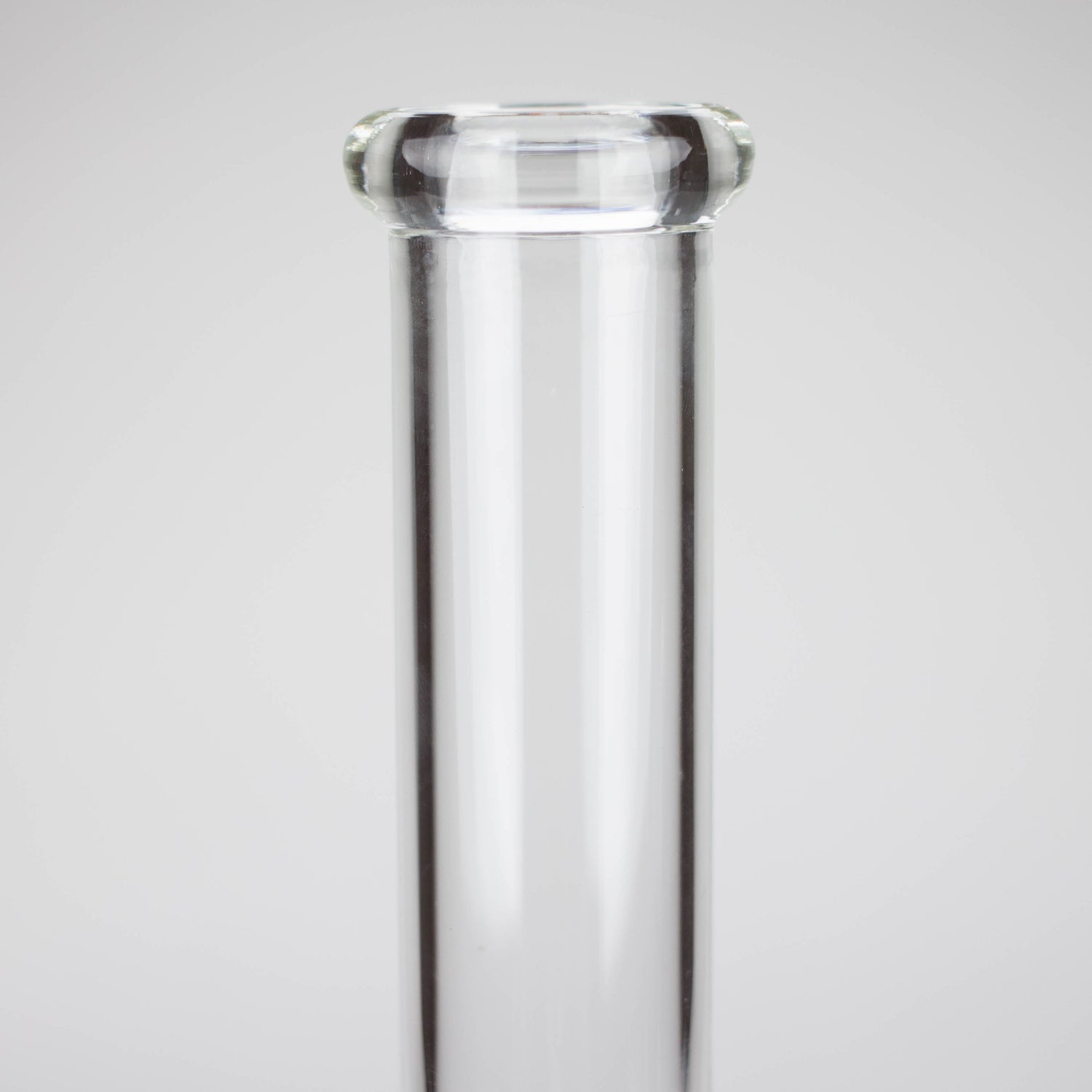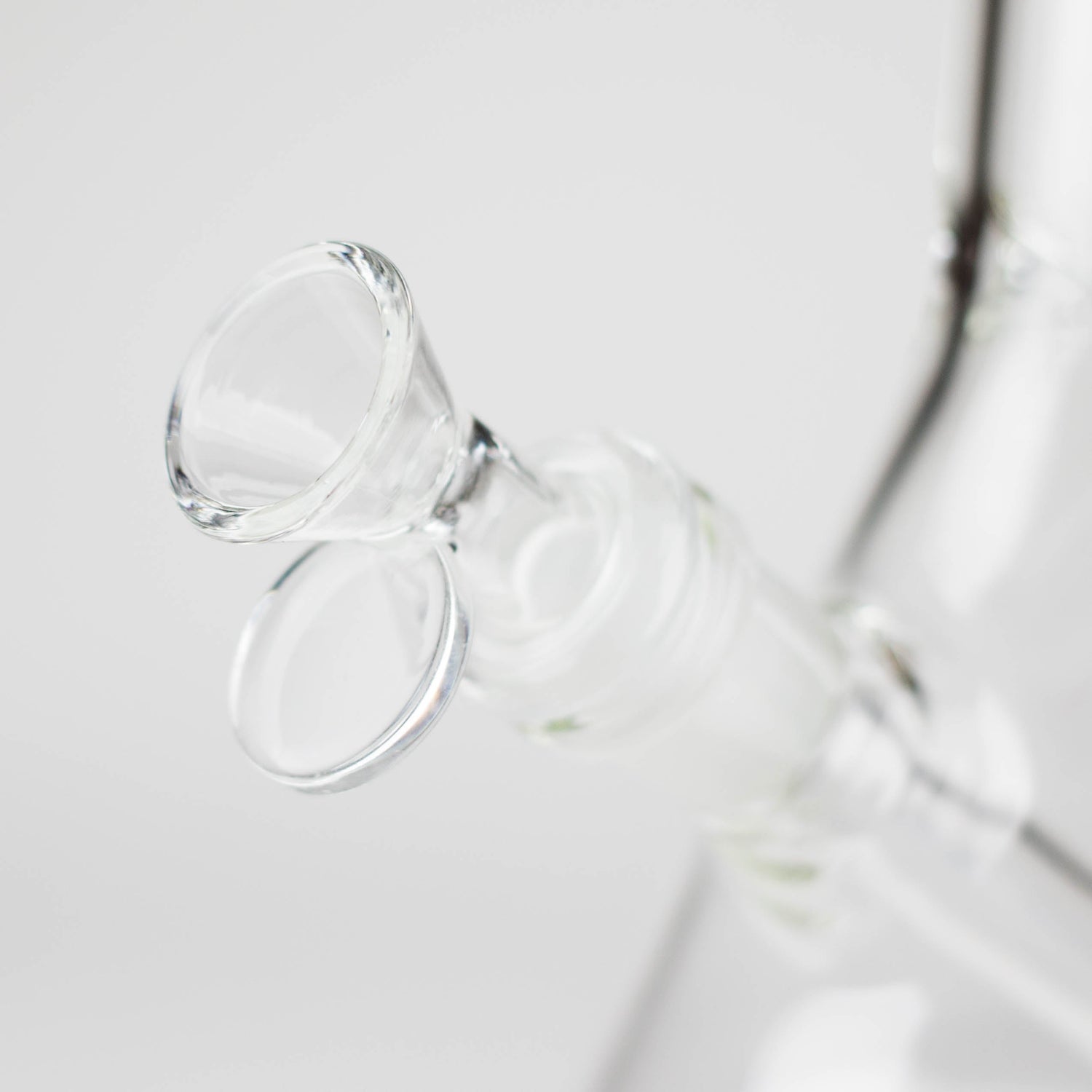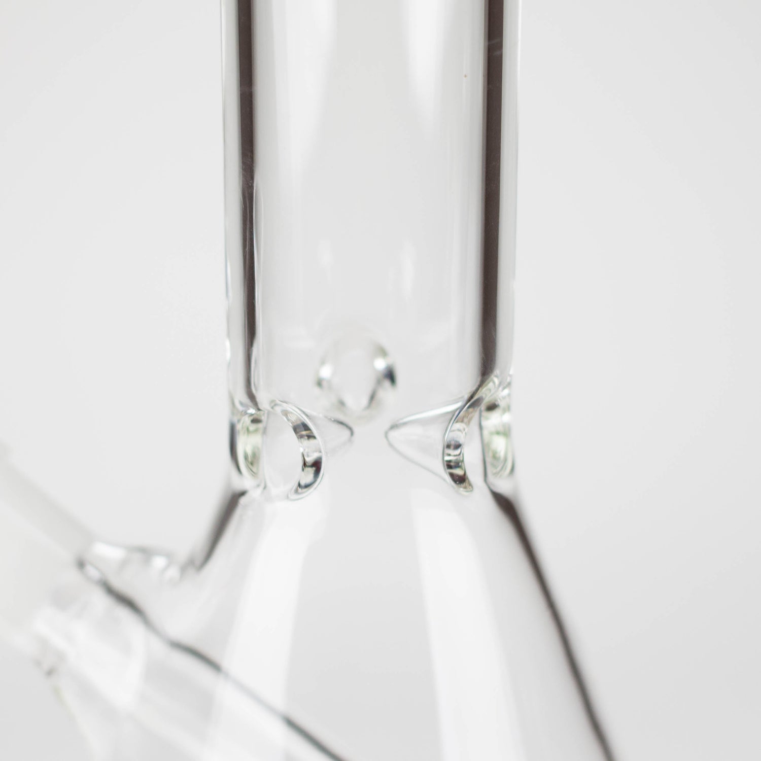 This beaker-shaped bong boasts a durable glass construction with tasteful color accents and a 3 pinched ice catcher for a classic smoking experience. It's the perfect addition to your smoking ritual, providing long-lasting quality for your enjoyment..