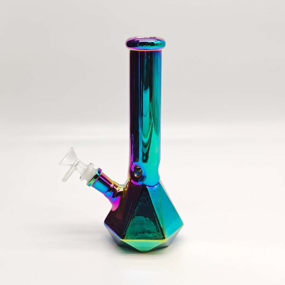 10" 4mm Electroplated Hexagon Base Glass Bong-Assorted Color - Rainbow is backordered and will ship as soon as it is back in stock.