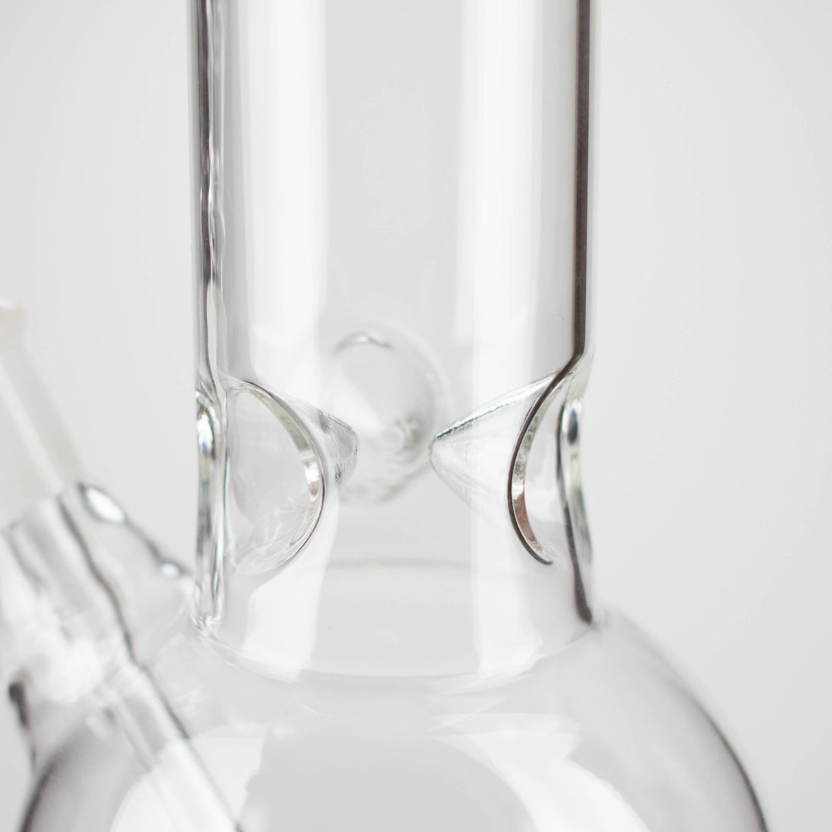Indulge in simple luxury with this beaker-shaped bong. Crafted from quality glass, the design boasts tasteful color accents and a 3 pinched ice catcher. Whether you're enjoying your favorite herbs or unleashing your inner mad scientist, this high-quality pipe guarantees a fantastic smoking experience every time. Upgrade your collection with this timeless and durable piece.
