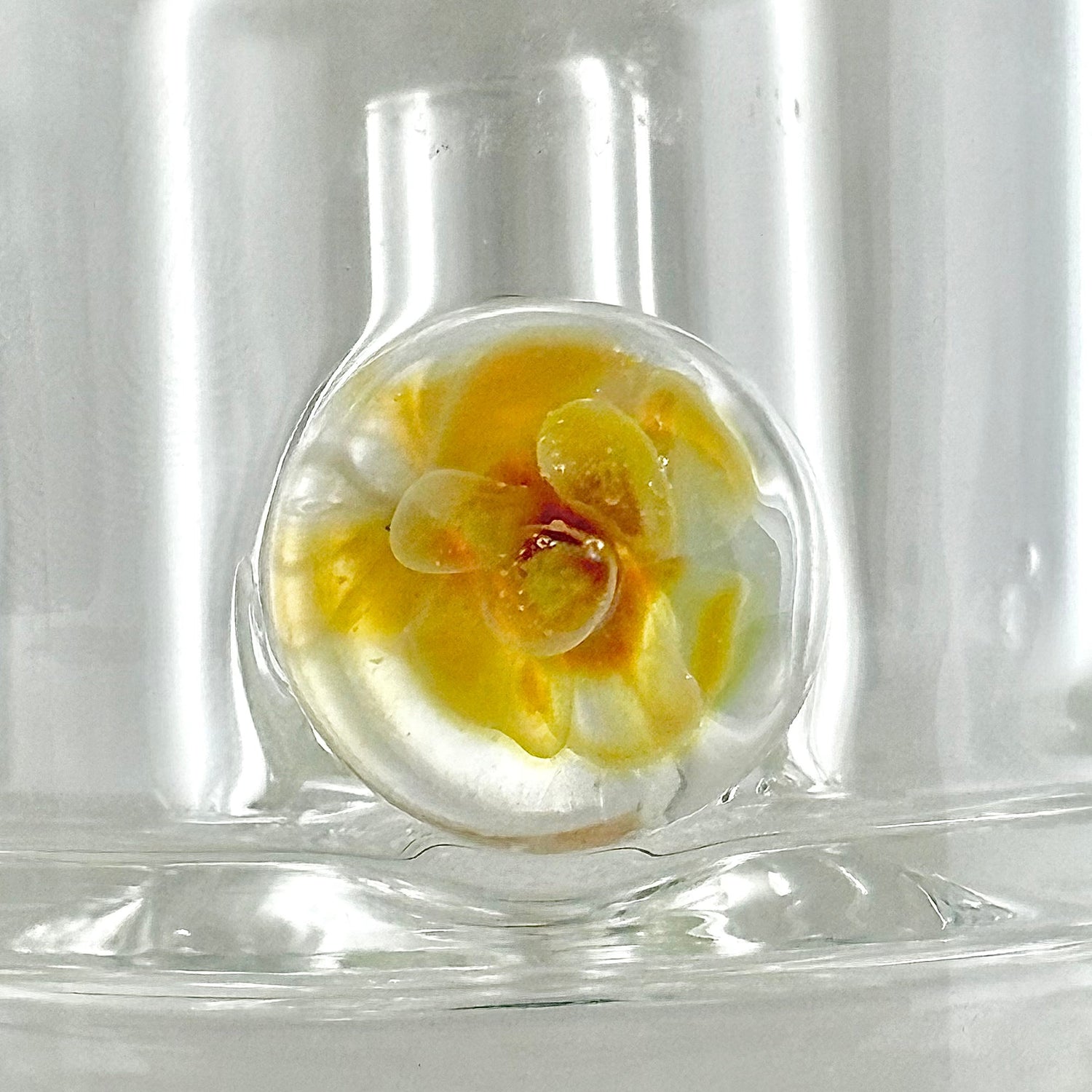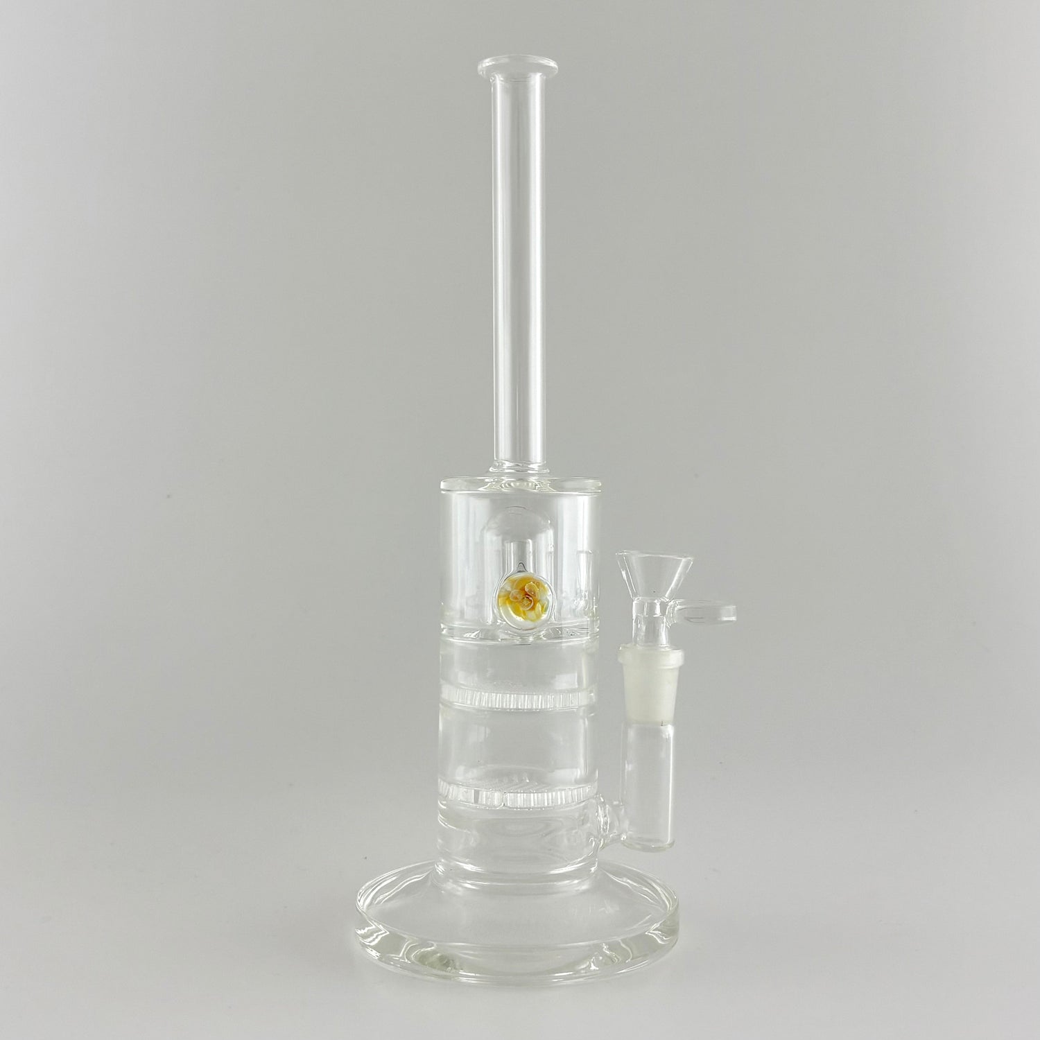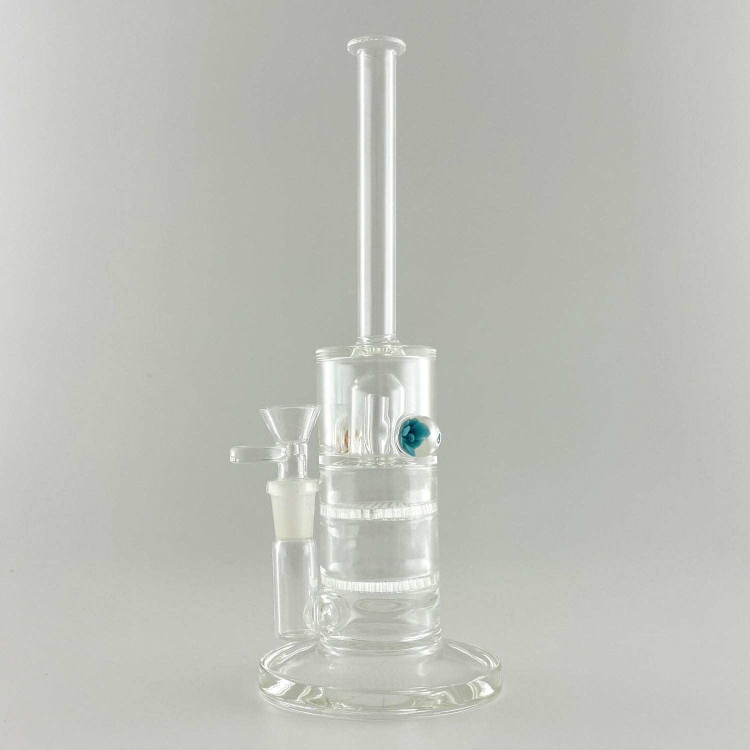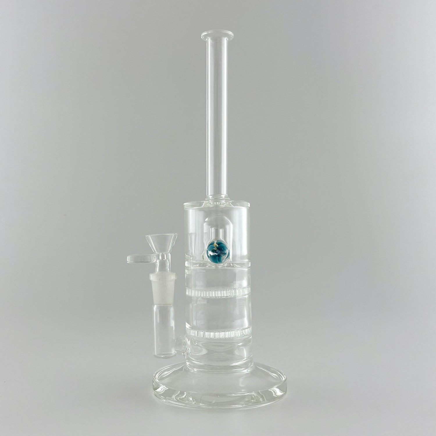 What makes this piece truly stand out are the two custom glass pendants embedded in the chamber, adding both visual appeal and artistic flair. The 14mm joint size makes it compatible with a wide range of bowls and accessories, ensuring versatility for your setup.