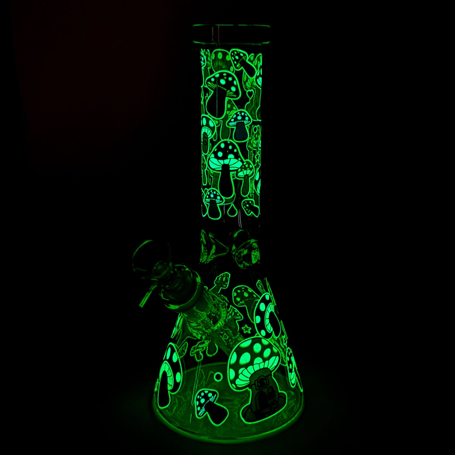 10" GlowShroom Glass Bong – 5mm Thick Glass, Glow-in-the-Dark Mushroom Design