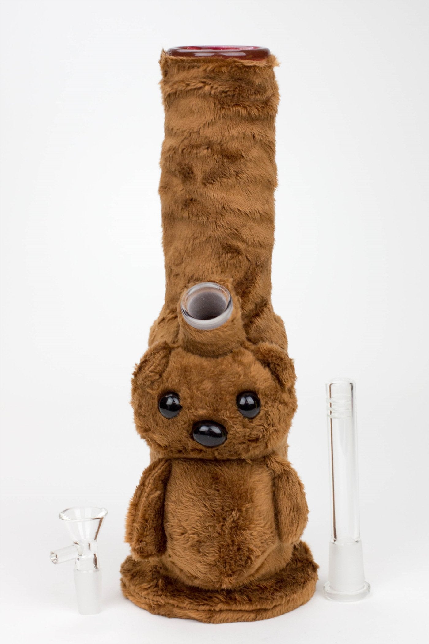 Sweeten up your day with this cute bear cover & bong! Makes for a charming and fuzzy smoking companion. The Bear Bong stands tall at 11 inches high.