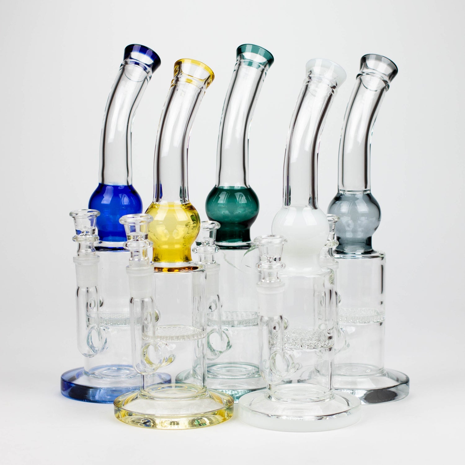 11" Color accented glass bong with honeycomb diffuser-Assorted