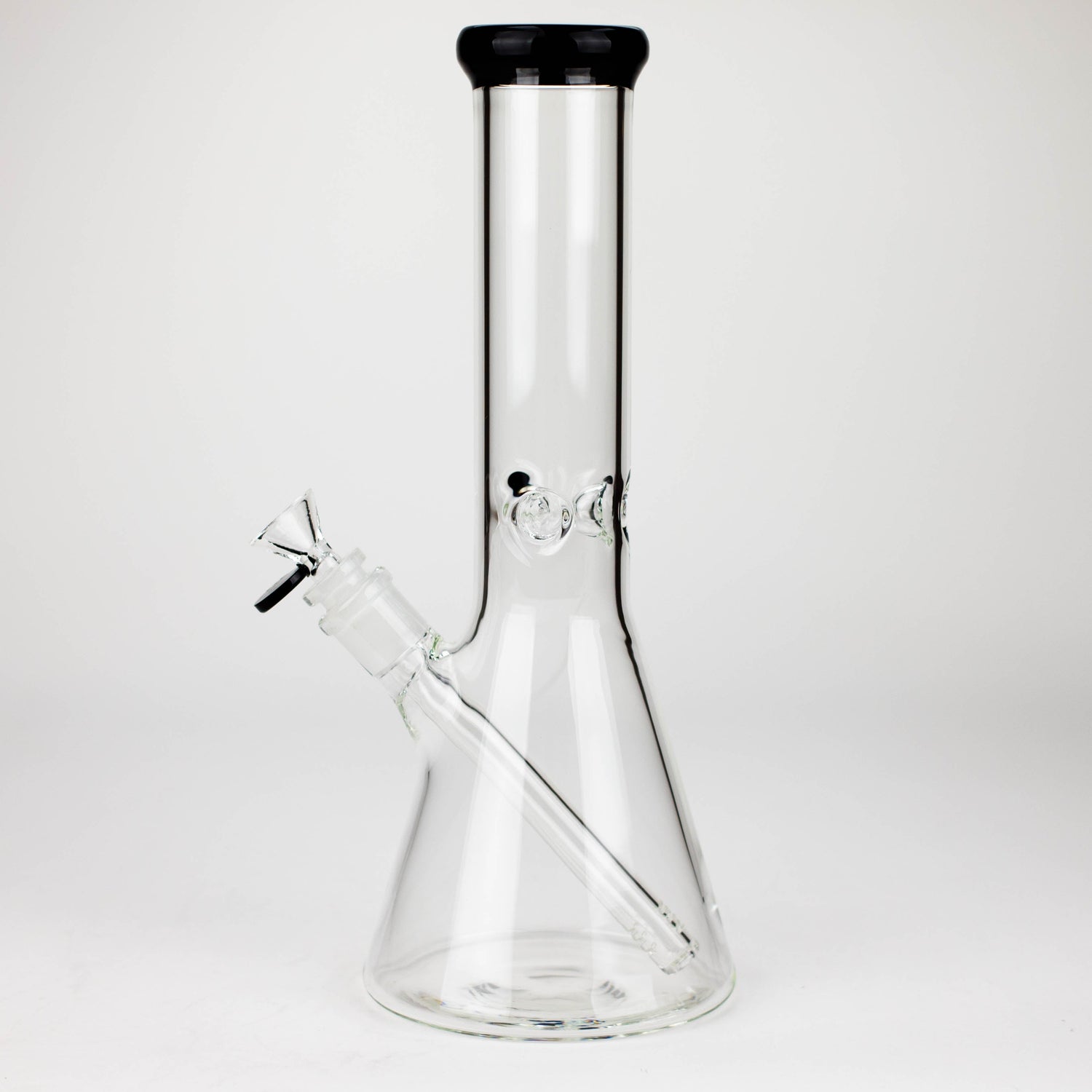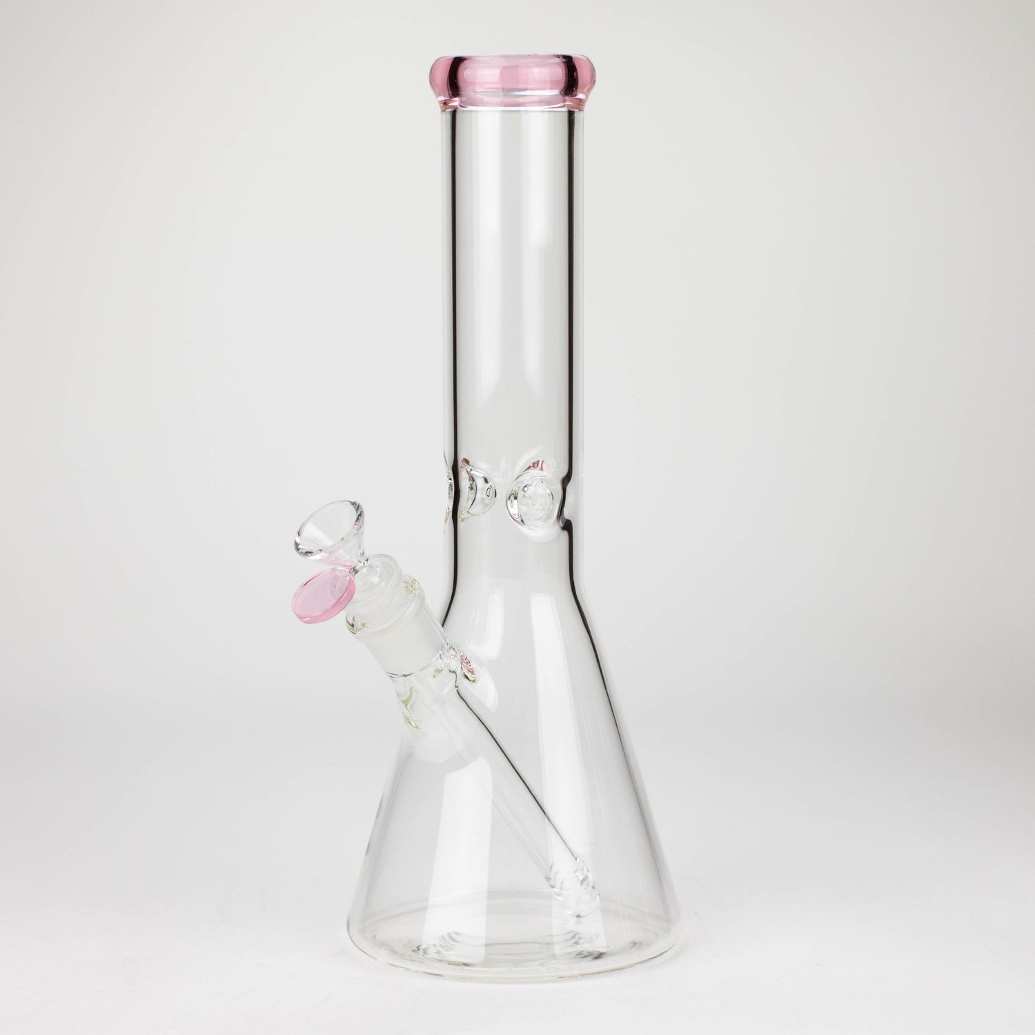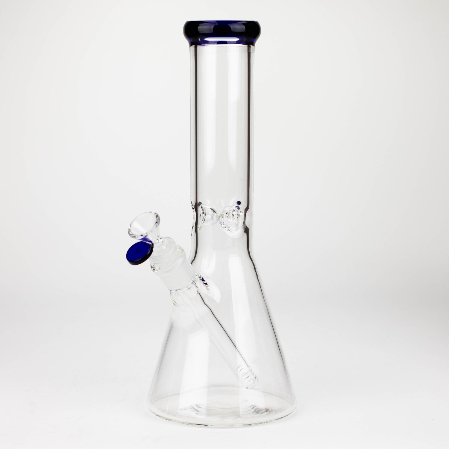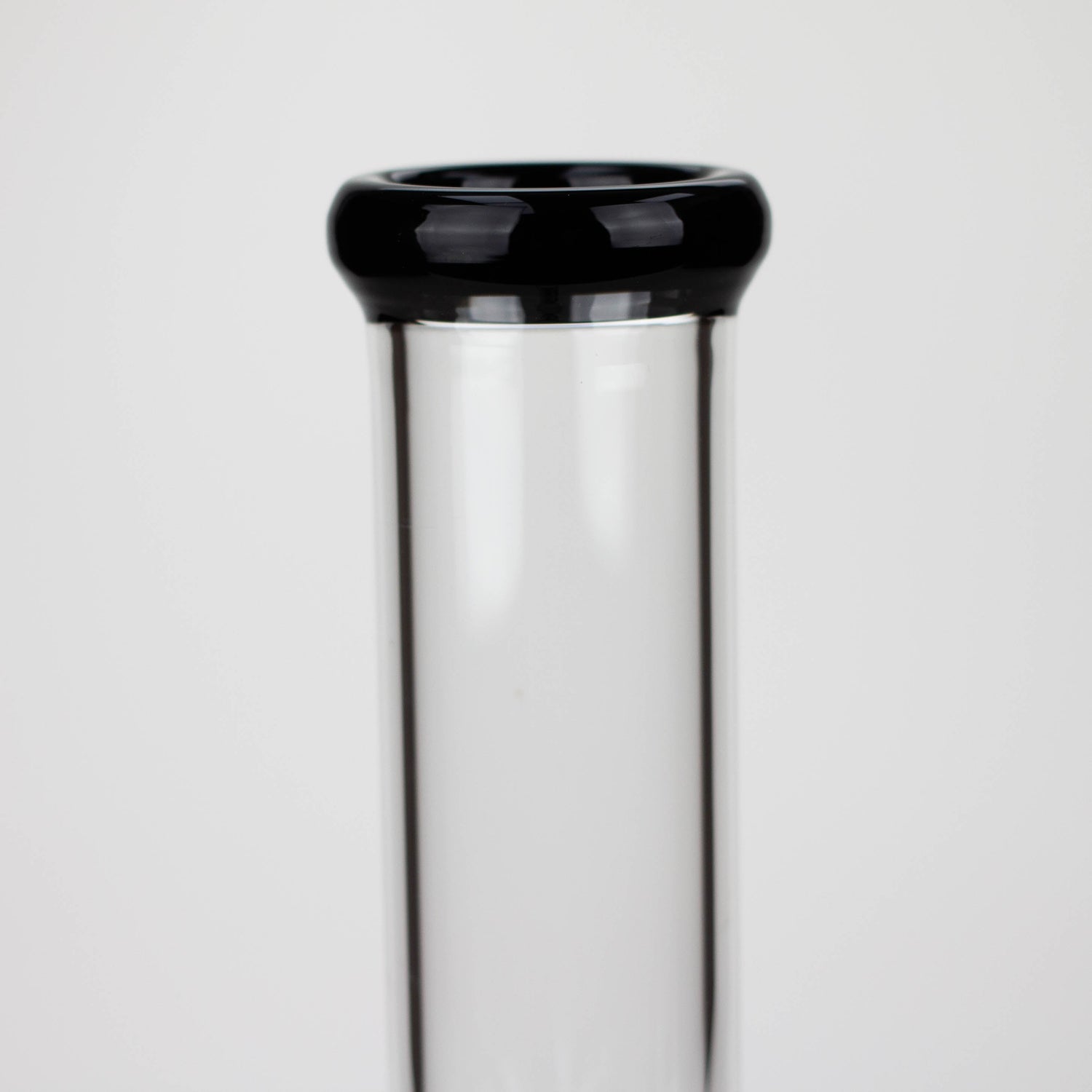 This classic beaker comes with ice notches and has a diffuser downstem and herb bowl. The rimmed mouthpiece is in coloured glass, creating a strong contrast. This beaker is a perfect base for adding your preferred accessories to personalize it. An 18-inch version is also available.
