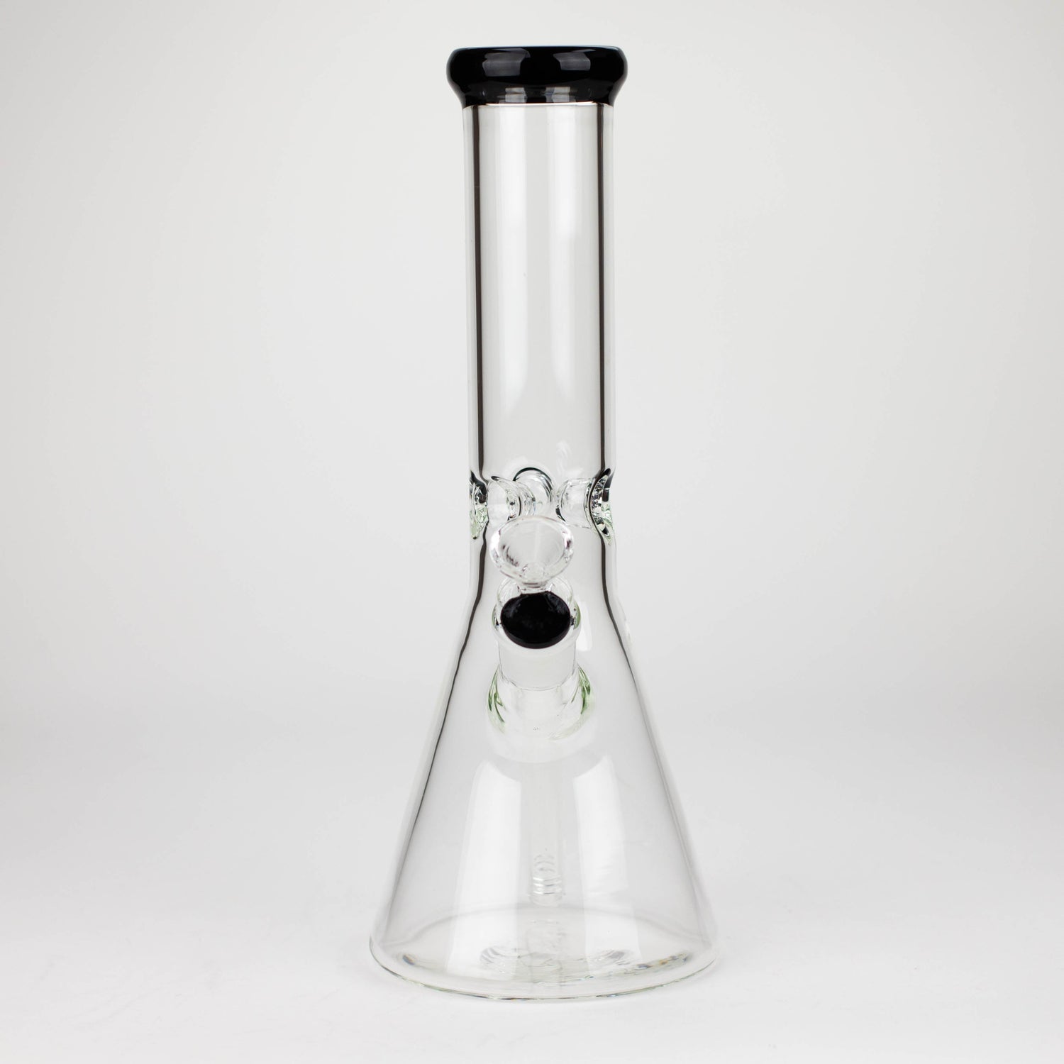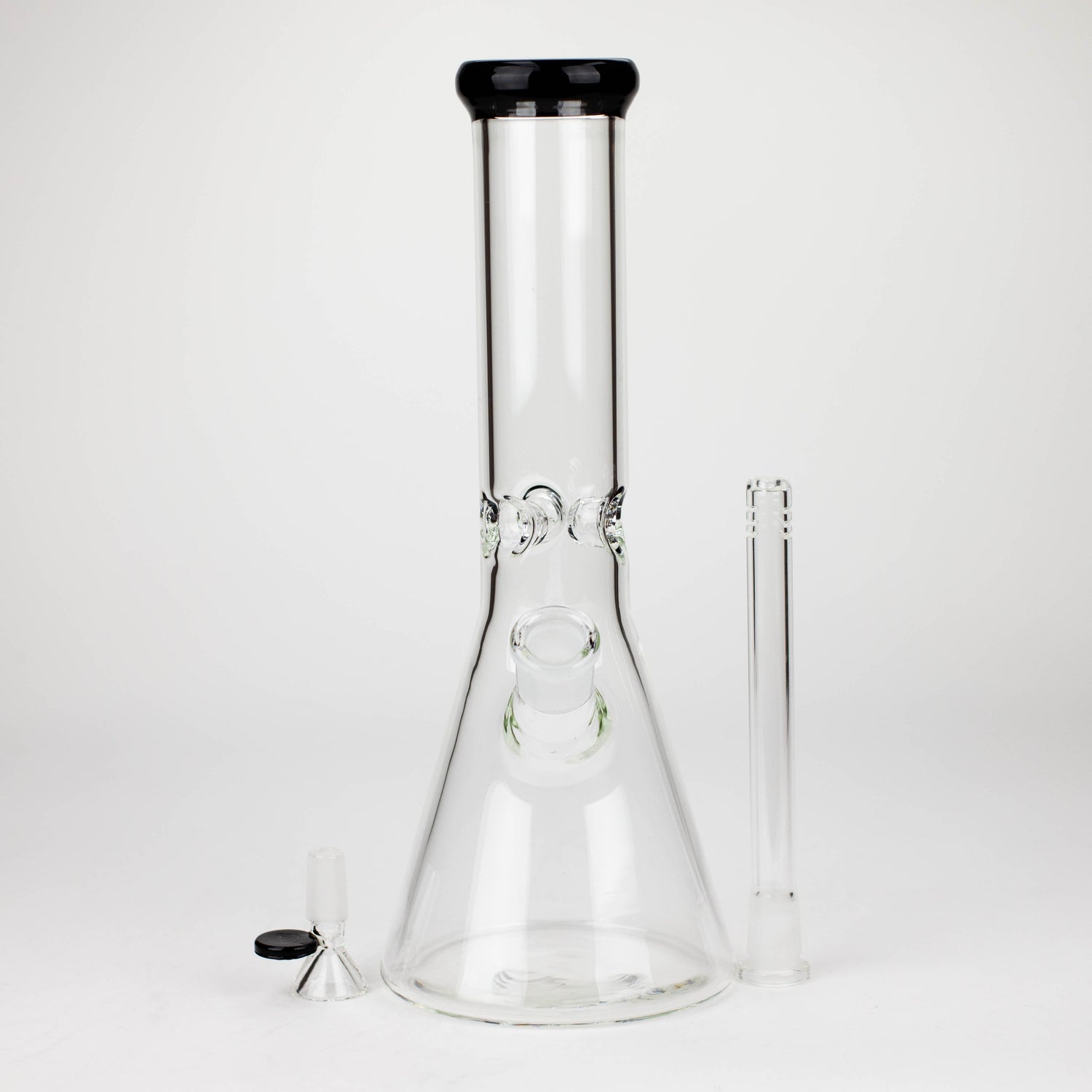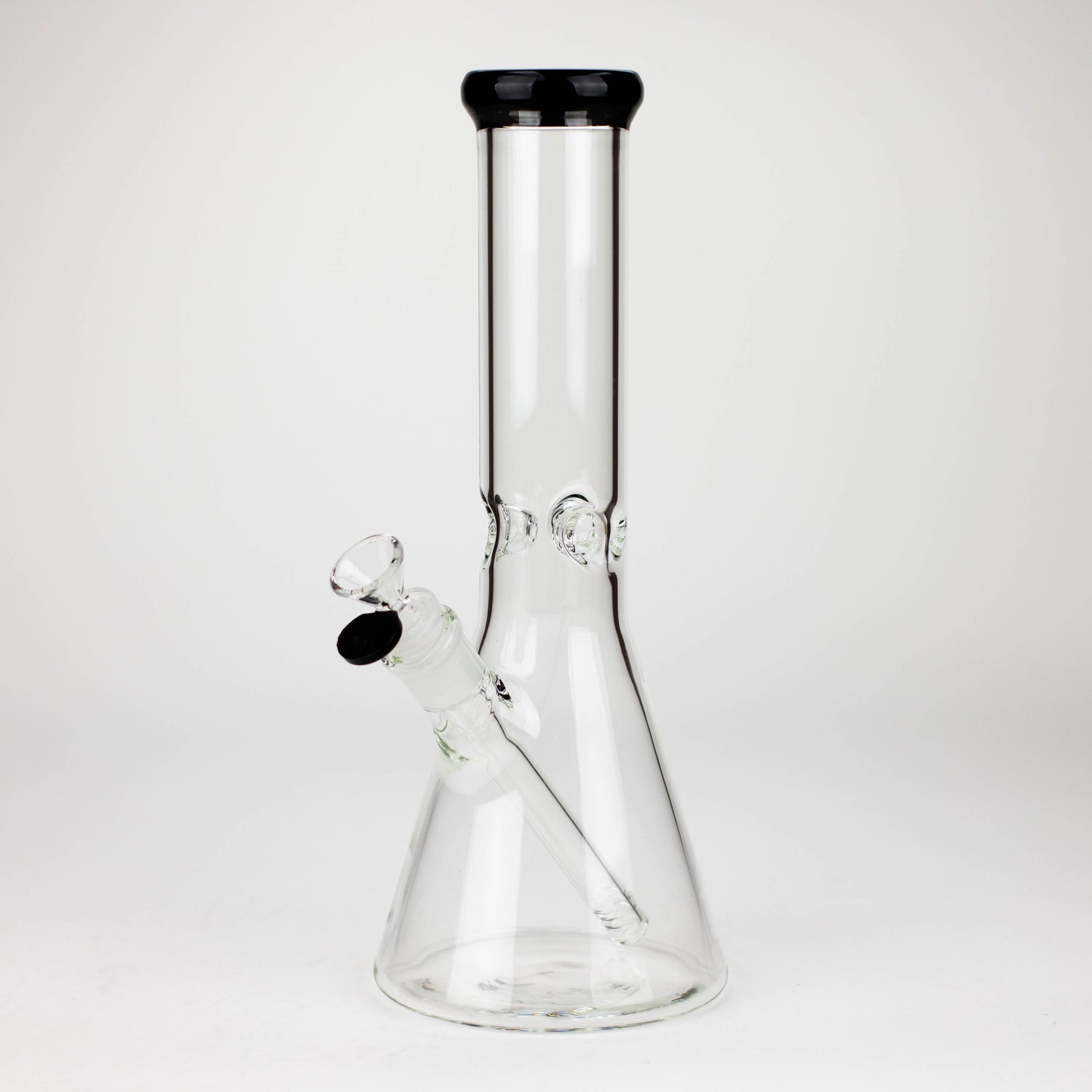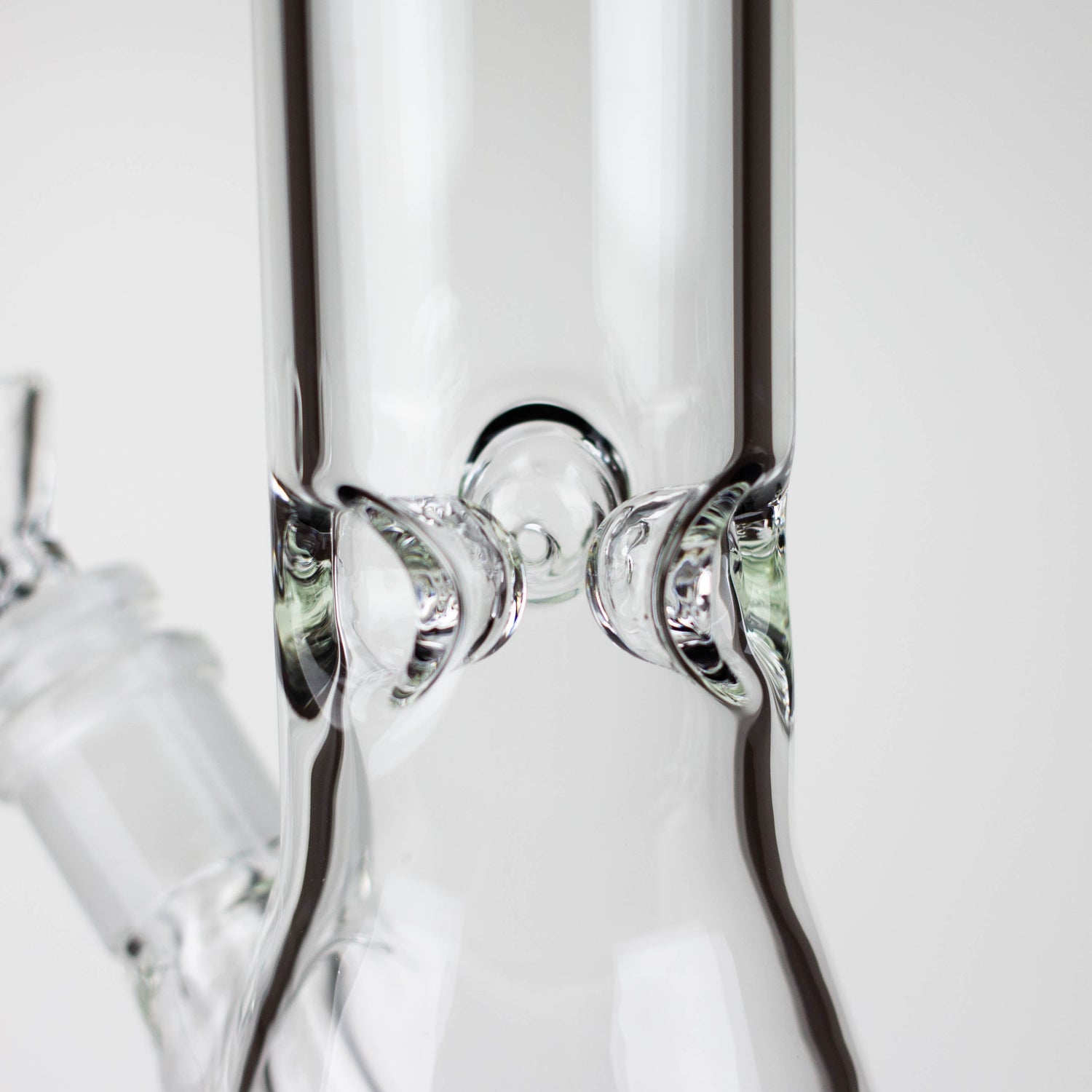 This classic beaker comes with ice notches and has a diffuser downstem and herb bowl. The rimmed mouthpiece is in coloured glass, creating a strong contrast. This beaker is a perfect base for adding your preferred accessories to personalize it. An 18-inch version is also available.
