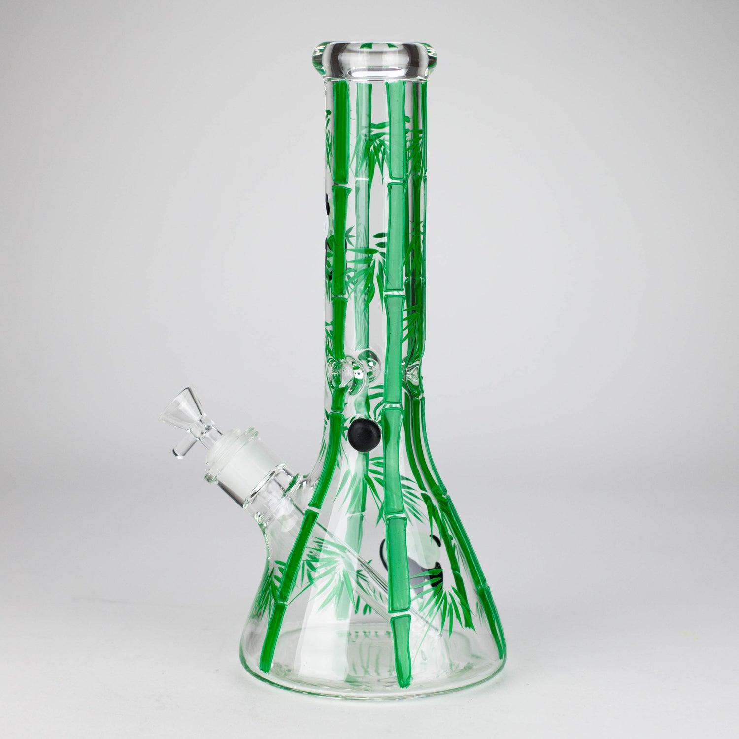 12" Panda & Bamboo Beaker Glass Bong – 7mm Thick with Ice Pinch