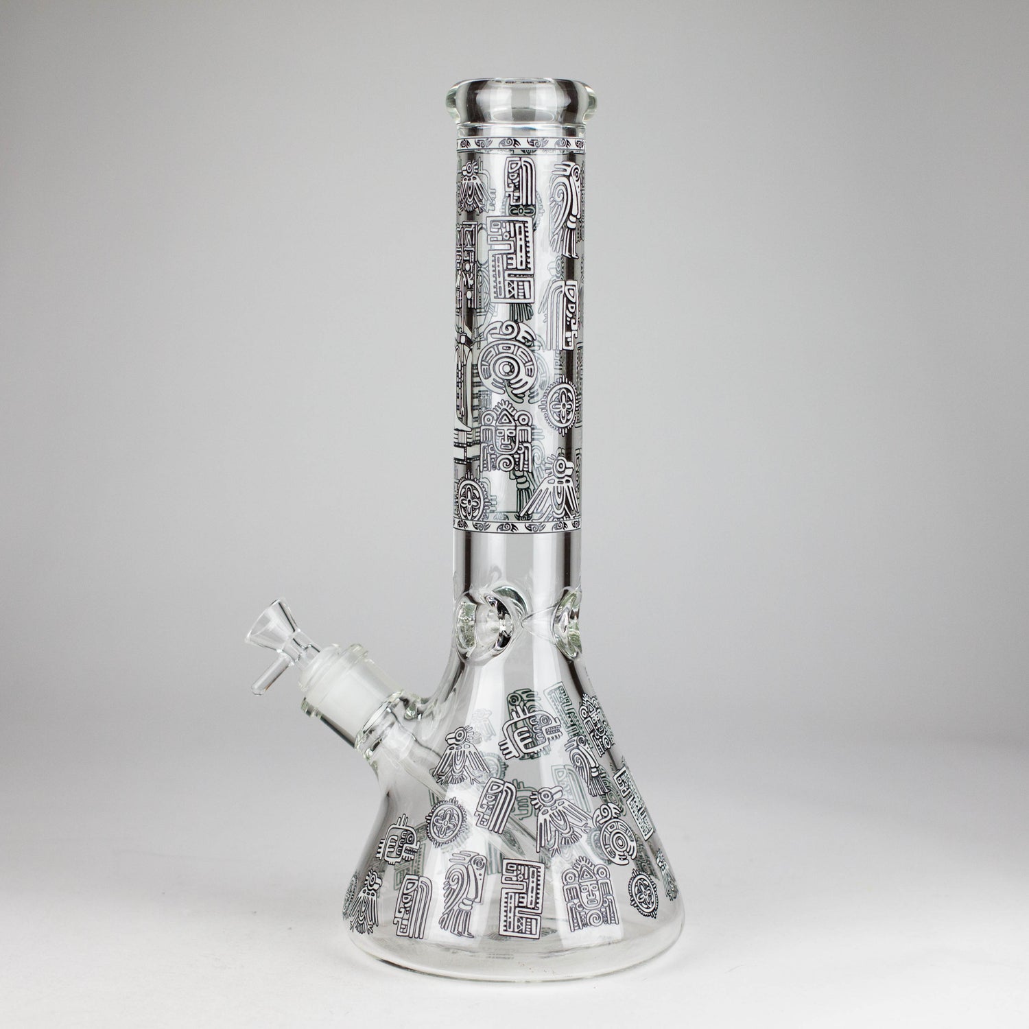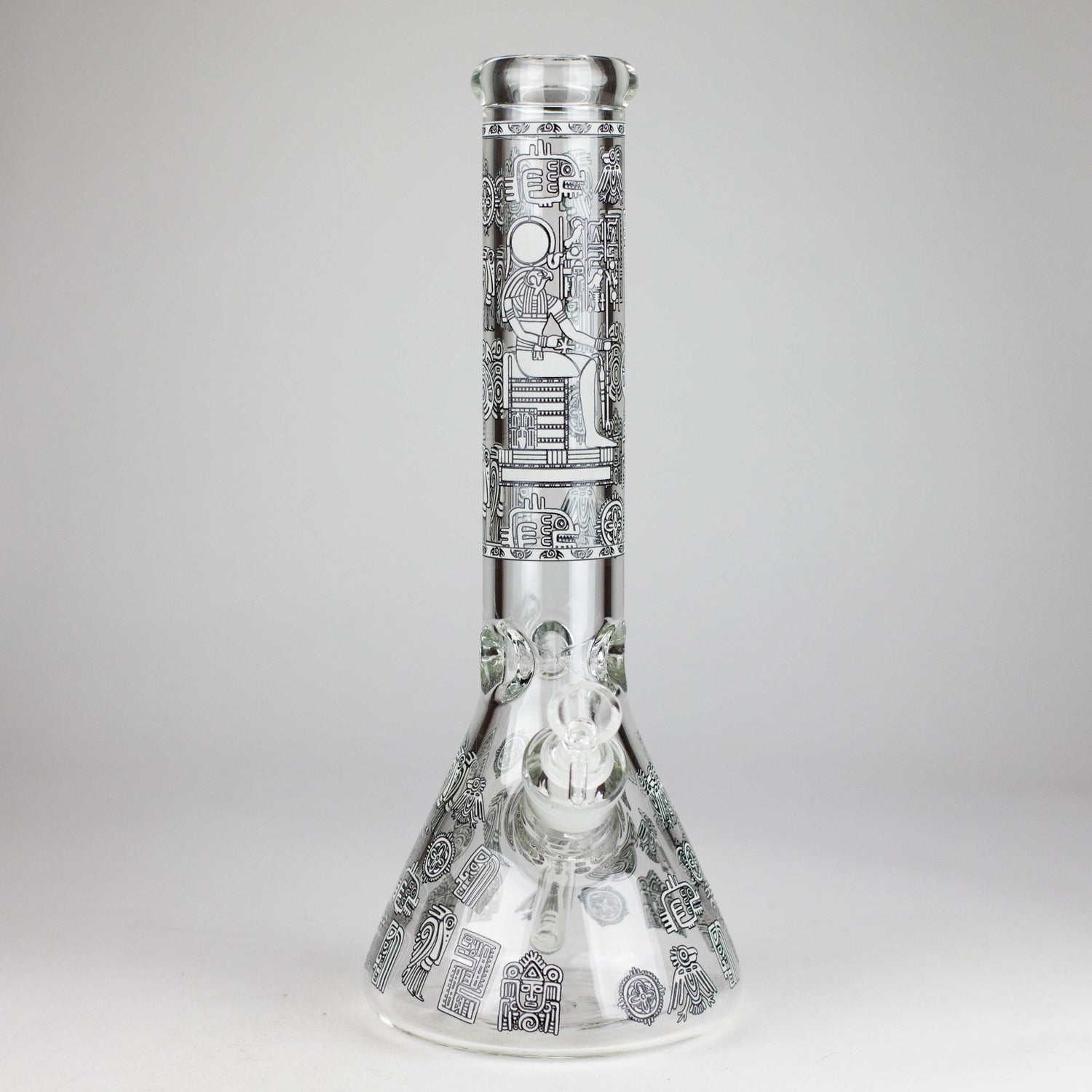 dd a touch of ancient style to your sessions with the 14" Glow-in-the-Dark Egyptian Design Bong. Made from high-quality 7mm borosilicate glass, this beaker bong is sturdy, reliable, and ready to deliver smooth, flavorful hits. Its Egyptian-inspired artwork glows in the dark, giving it a unique look whether day or night.