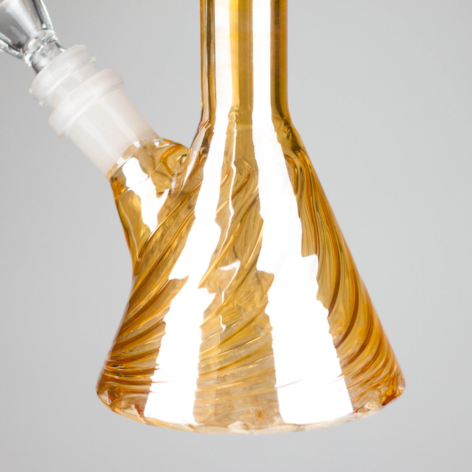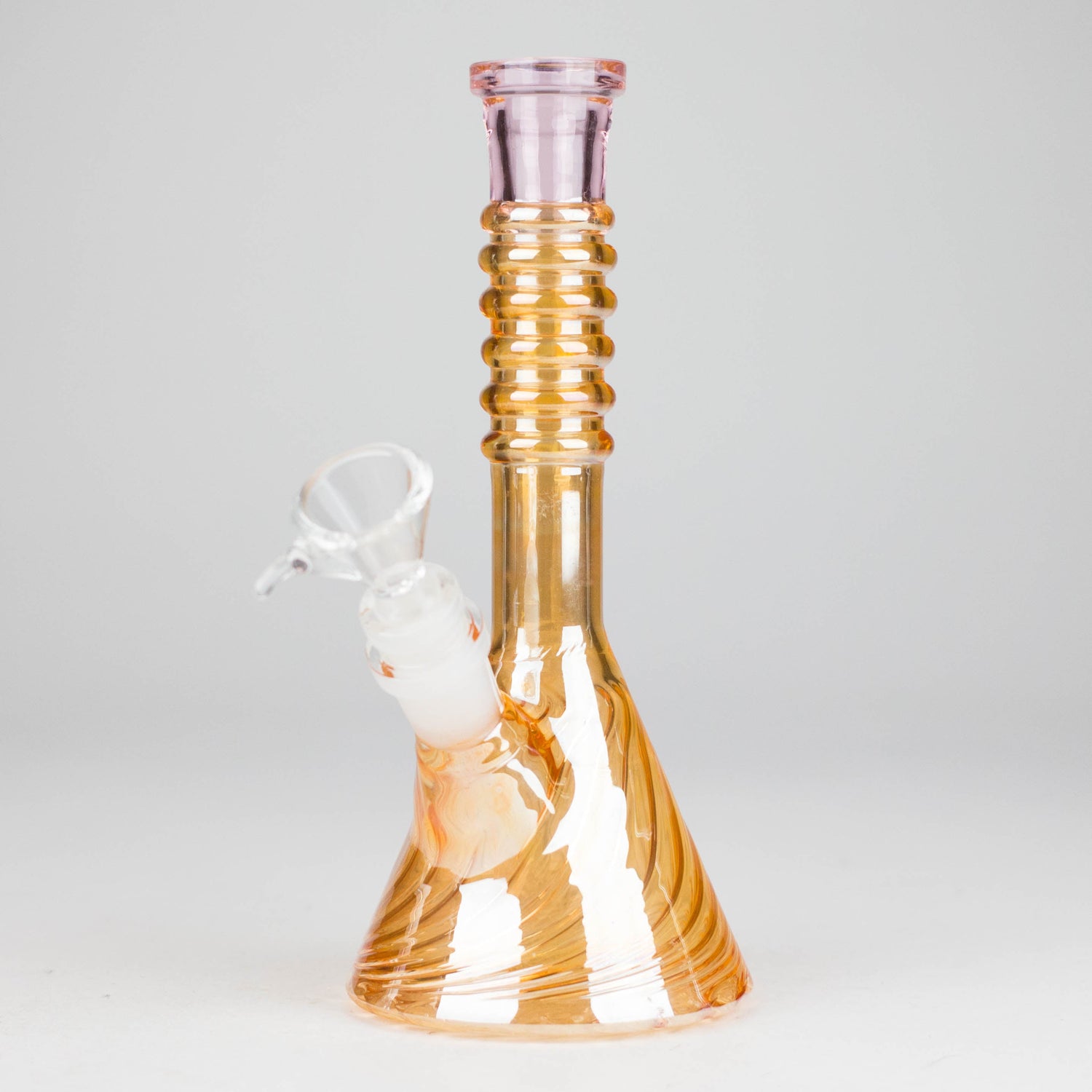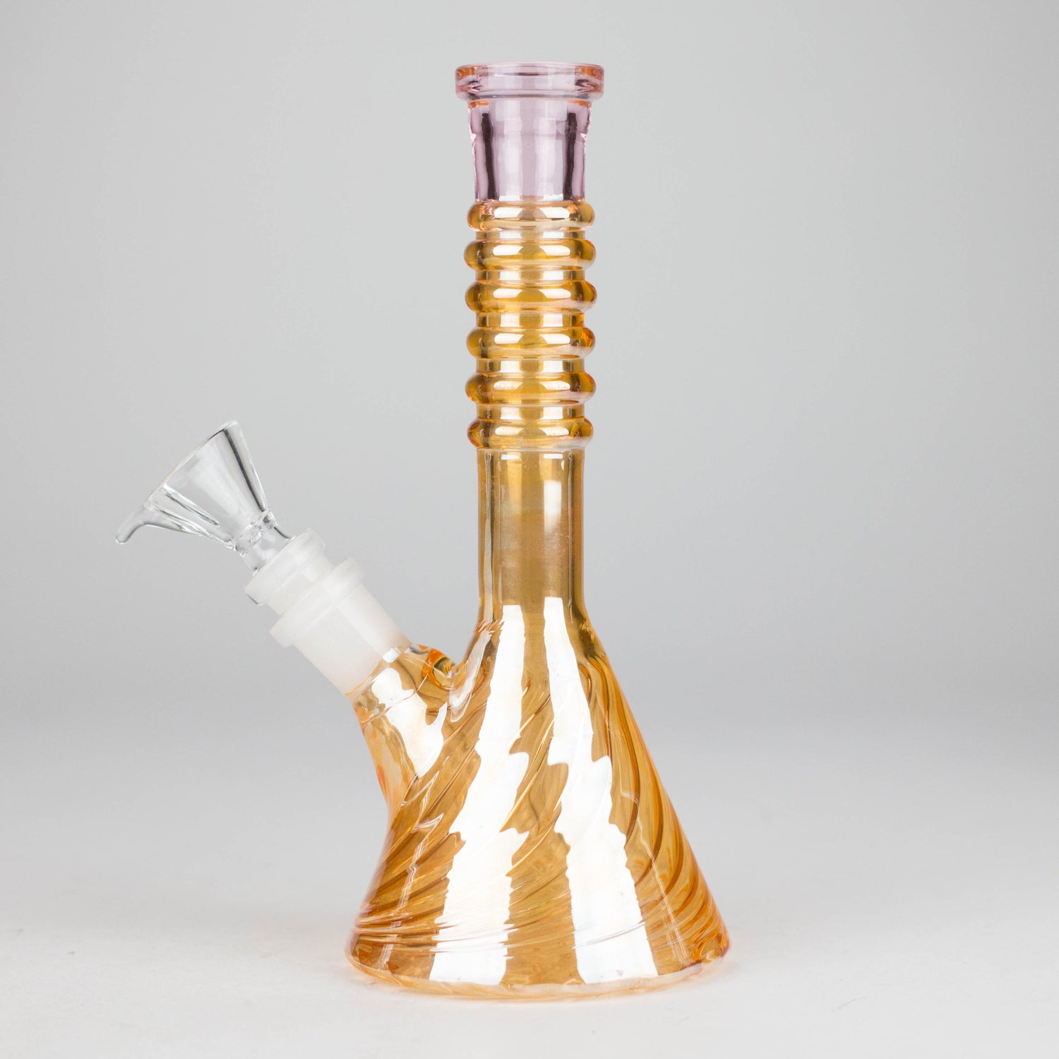 8" Shiny Beaker Bong 6 Rings Mouth Ring with Handle Slide, Color Amber Glossy and Rainbow