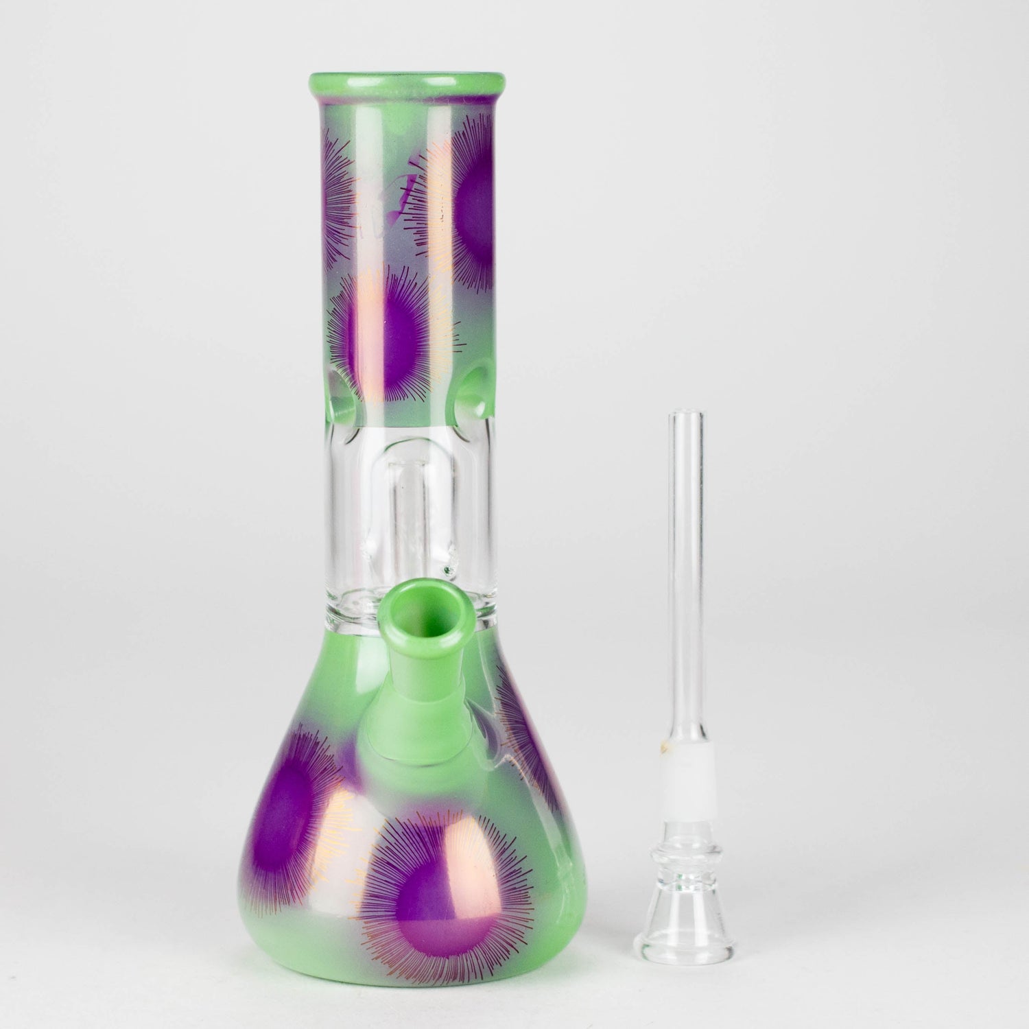 Enjoy smooth, filtered hits with this 8" Dome Percolator Water Pipe. Designed with a sturdy beaker base and equipped with a single dome percolator, this piece delivers clean and cooled draws every time. The 3-pinched ice catcher allows for extra cooling, while the 4.5" bowlstem provides secure and efficient use. Each pipe features painted surface designs in assorted colors and patterns—note that paint may naturally peel over time.