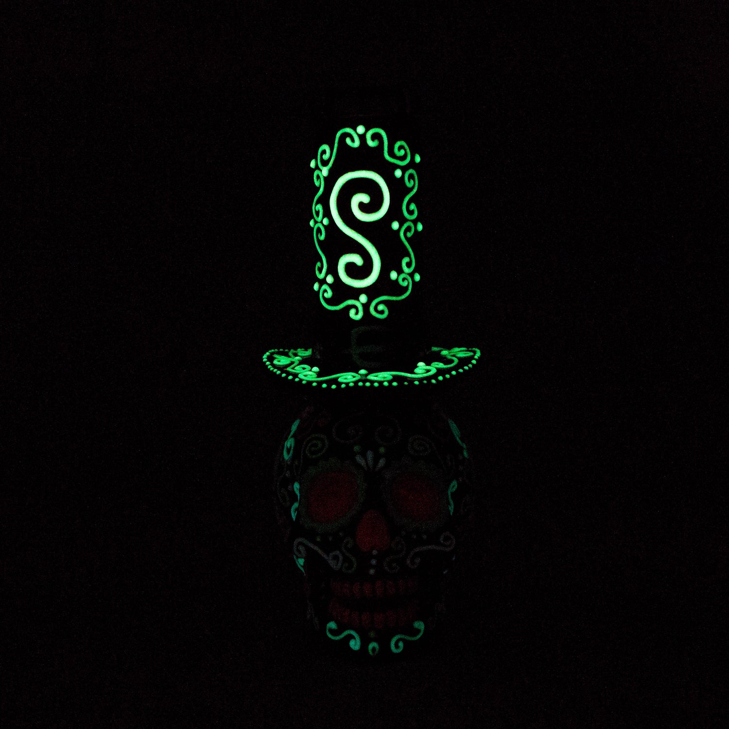 - Design: Features a captivating wizard-themed sugar skull design, adorned with intricate details that come alive in the dark with a magical glow.