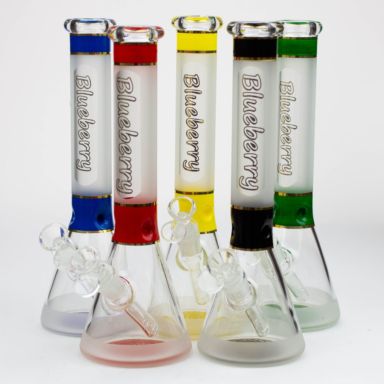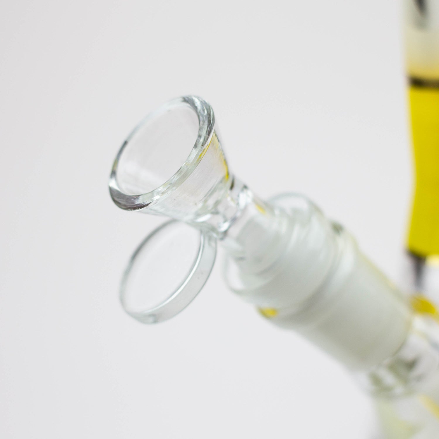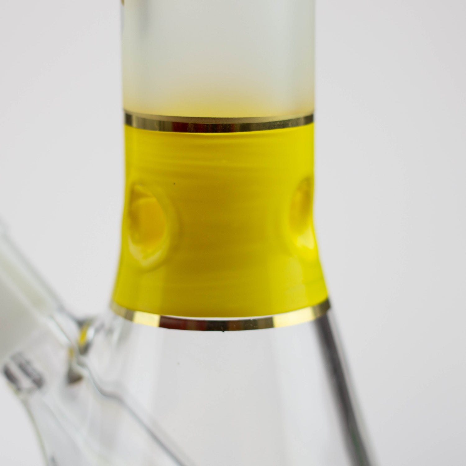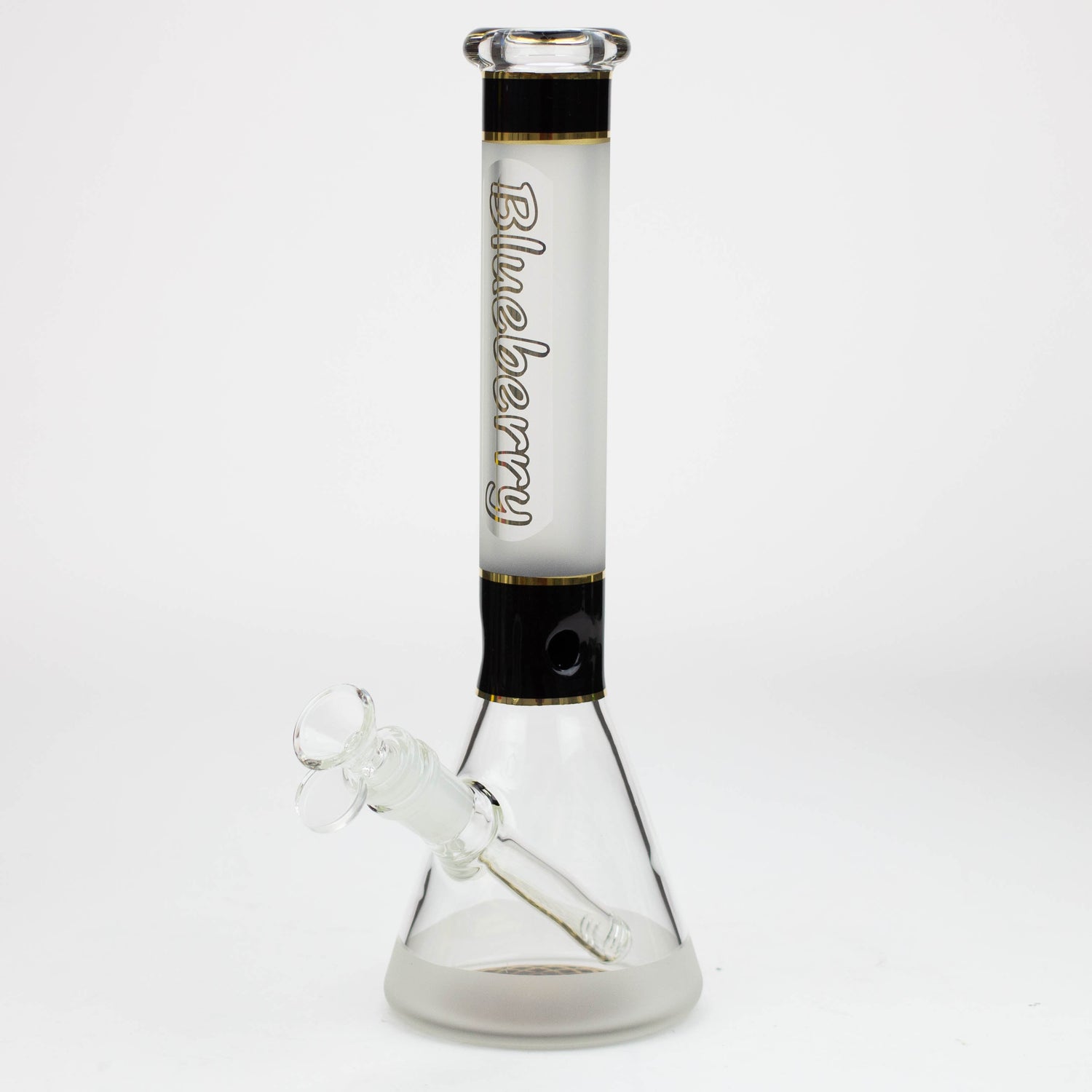 This is a solid beaker with a frosted neck and a mandala pattern on the base in the same colour accent as the ice pinch. It comes with a herb bowl and slitted downstem. This is a mini version of our 18 inch Nice Glass ST016 beaker of the same style.