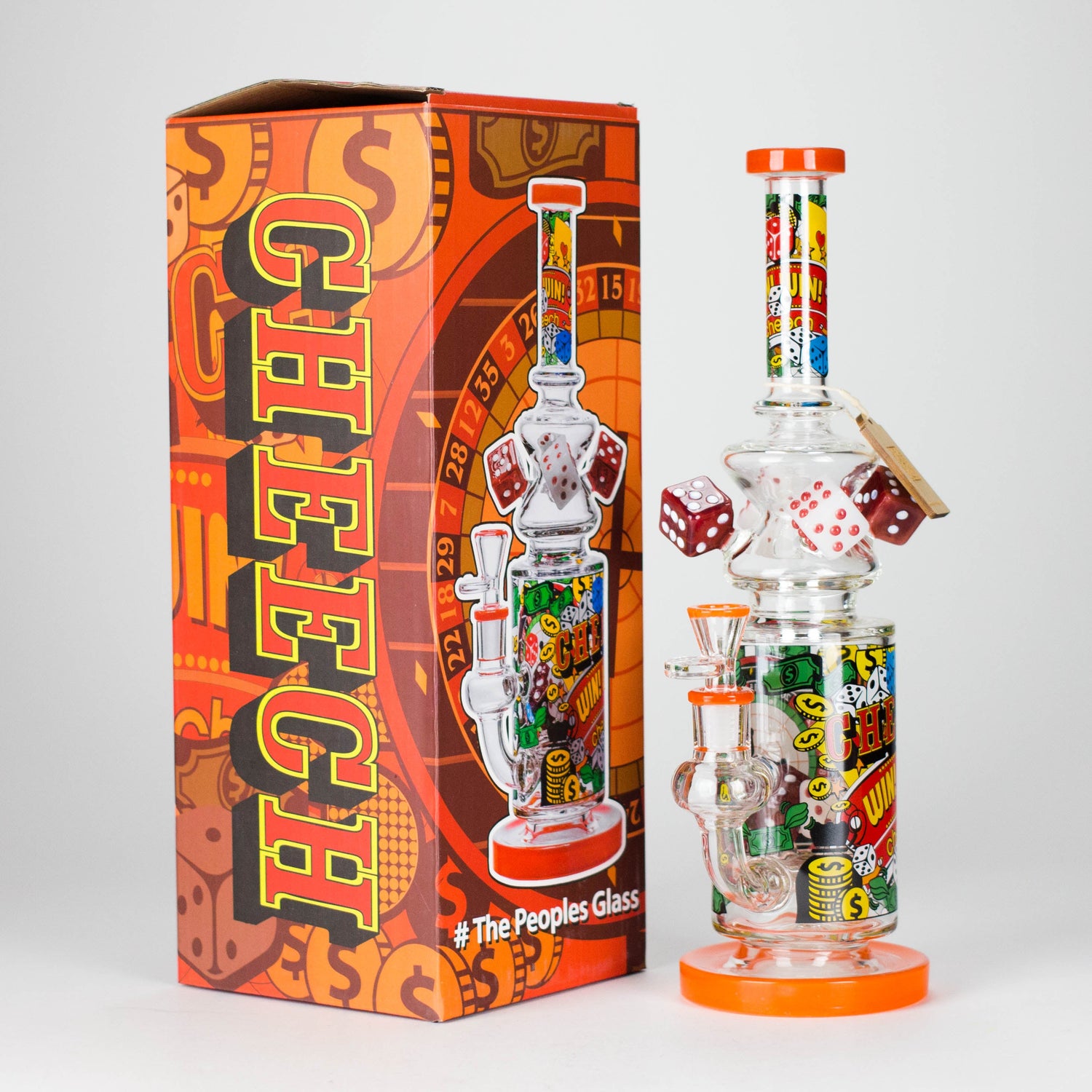 Get ready to roll the dice on epic sessions with the 13" Are You Feeling Lucky Waterpipe by Cheech Glass. This lively, casino-inspired piece features an explosion of color, dice-themed attachments, and bold wraparound artwork including roulette wheels, dollar signs, and comic-style graphics. Designed for those who love a little Vegas flair with their smoke, this pipe brings both fun and functionality.