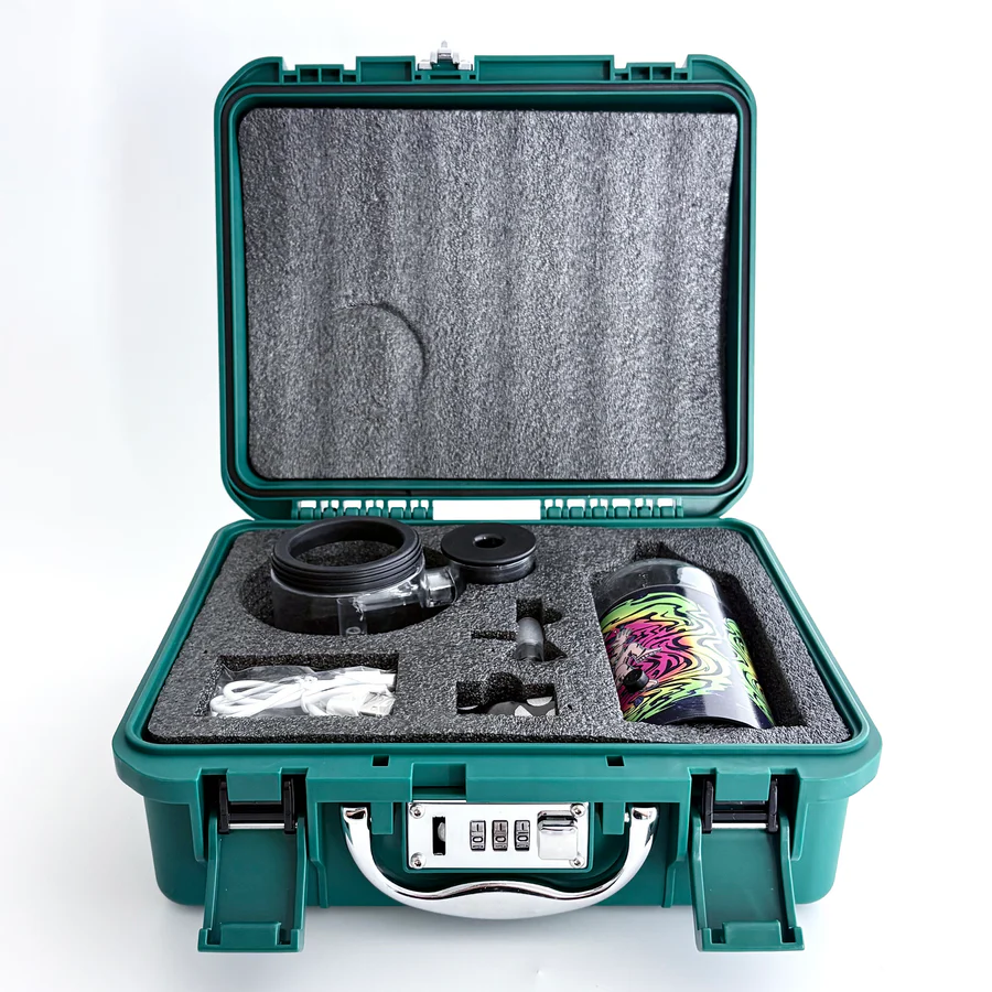 - Includes a glass bowl piece, glass mouthpiece, carrying case with lock, metal screen, and usb-c charging cable
