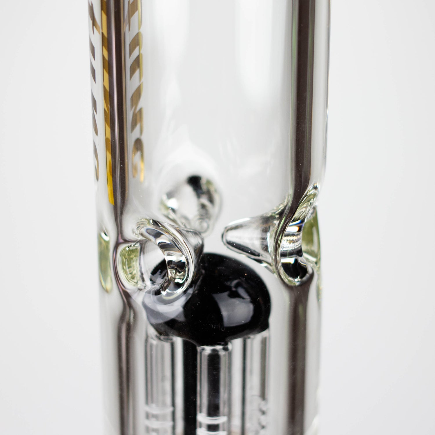 This Fortune water pipe is 18" tall and is fused with an attached of 6 and 10 arm, diffused tree percolator. The percolator filters and cleans the smoke and efficiently maximizes the hit.