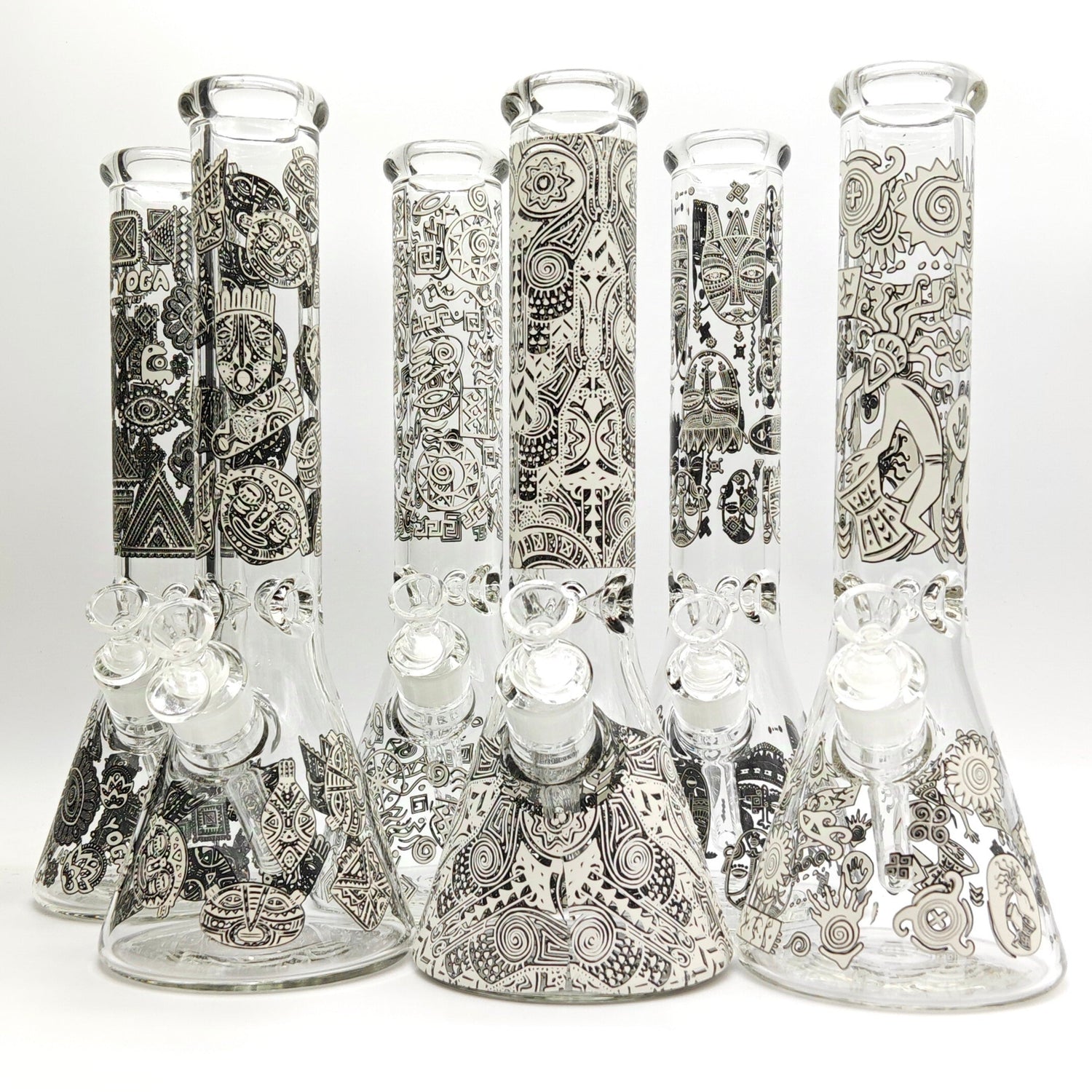 Glow in the dark 14" 7mm Egyptian Design Bong - Design A is backordered and will ship as soon as it is back in stock.