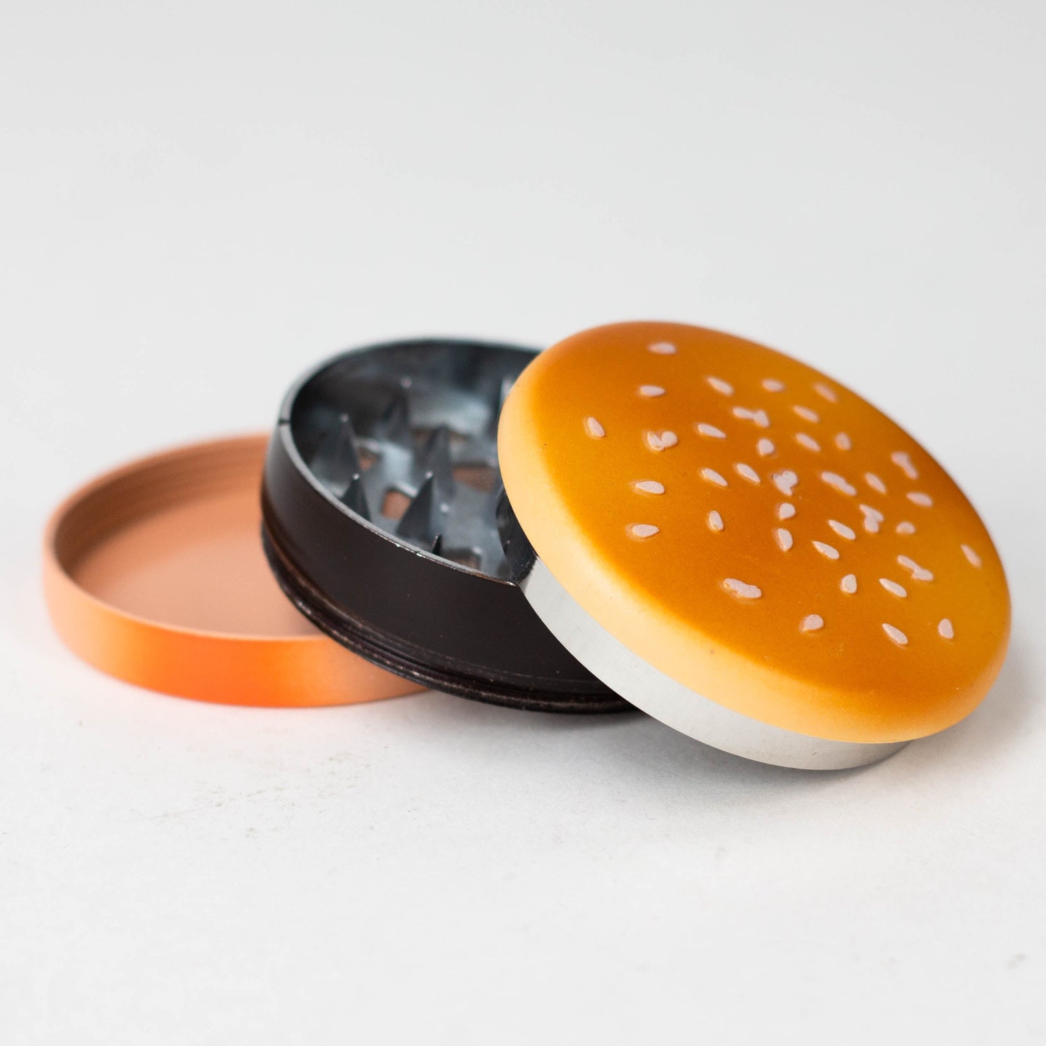 This is a 3-piece full metal grinder with a design that resembles a hamburger. It features sharp diamond-shaped teeth and a 2 inch grind area. It comes in a display containing 12 pieces.