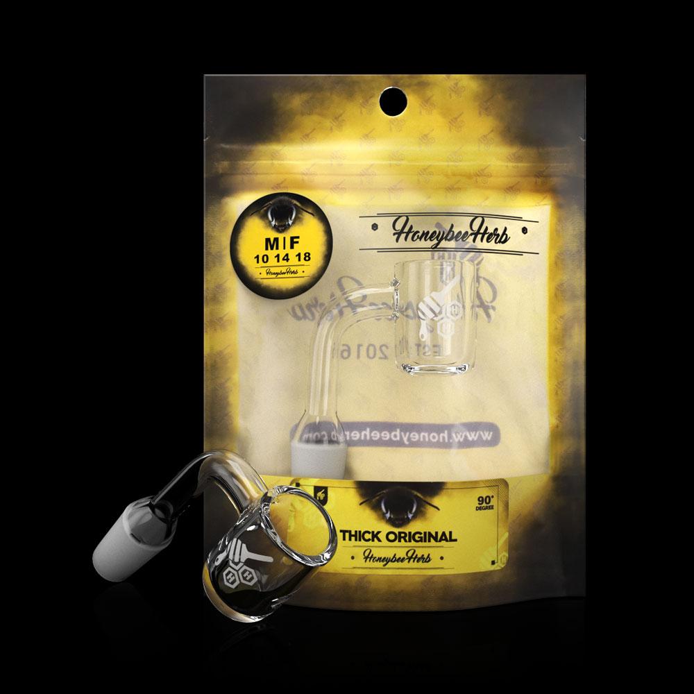 Straight forward design known and used by all but spruced up on toughness with a 4mm thickness. The thick original banger uses the standard Honeybee Herb design and styling our bangers are known for, including the very classy frosted joint and a flat top edge. A sutil elegance that begs for a classy dabber to go with it.