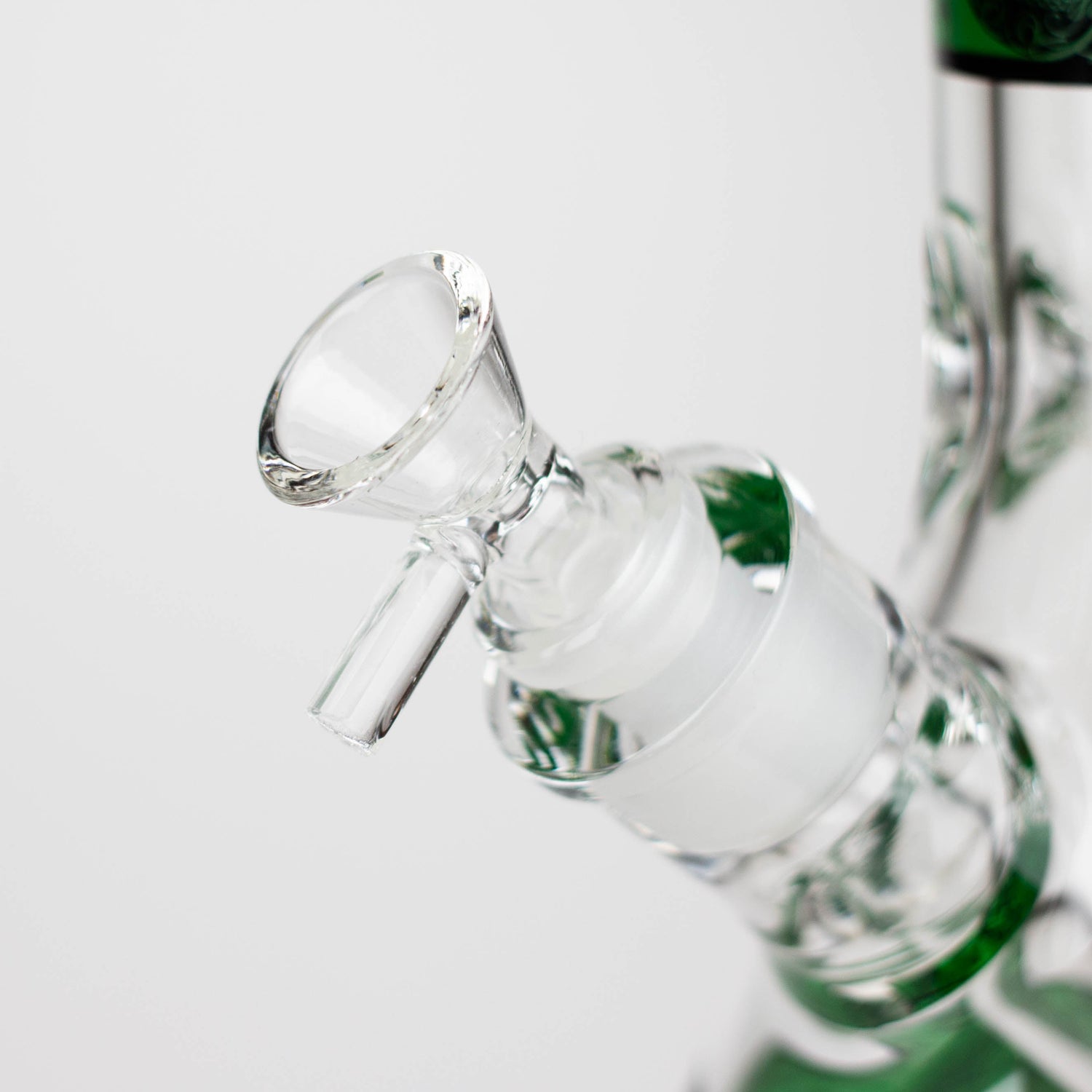 Crafted from high-quality borosilicate glass, this 14" beaker bong boasts a sturdy 7mm thickness and a wide 5" base. With a 2" tube diameter, it features a 3 pinched ice catcher and a thick bowl for a 14mm joint. The 5.5" length and 6 slits downstem ensure smooth and enjoyable hits