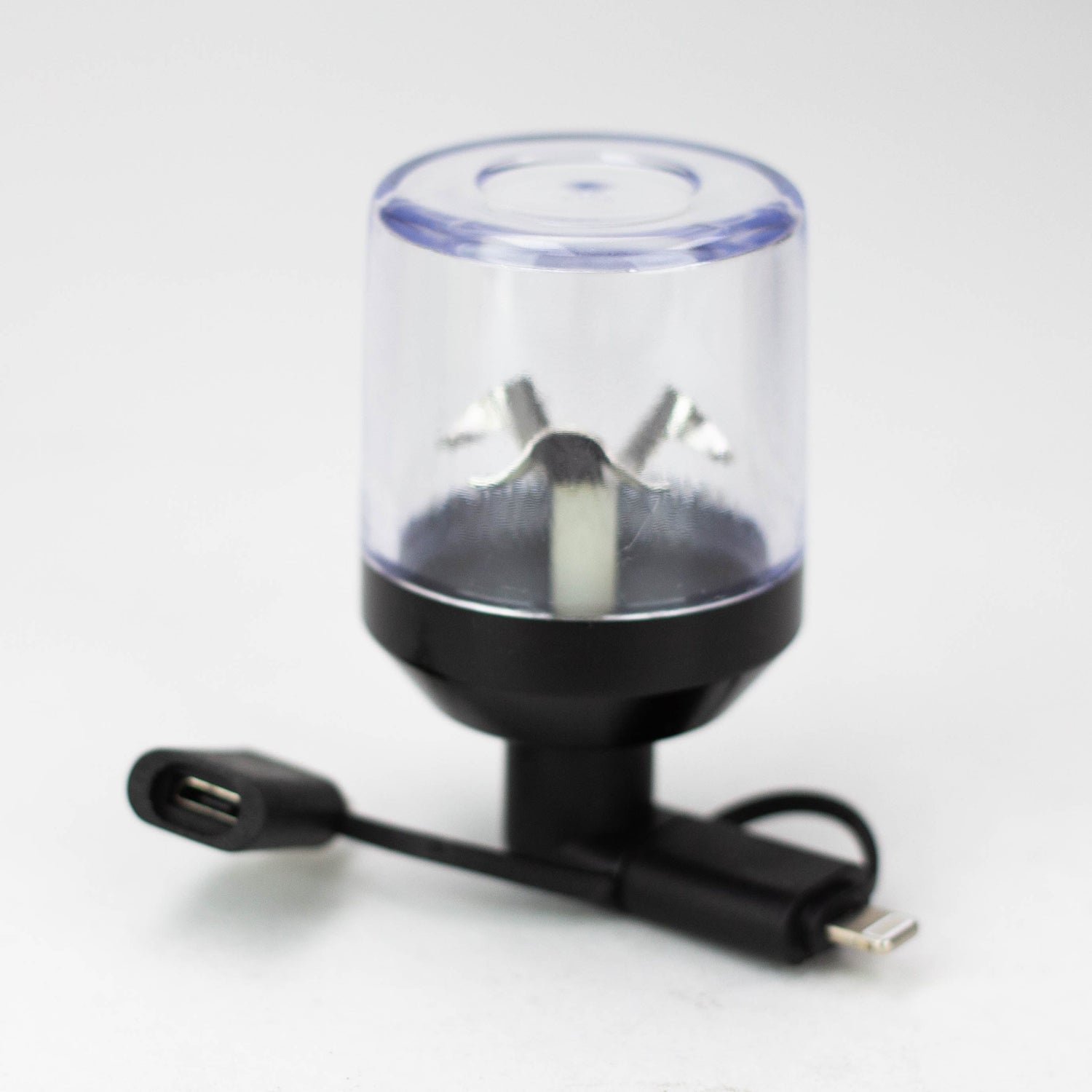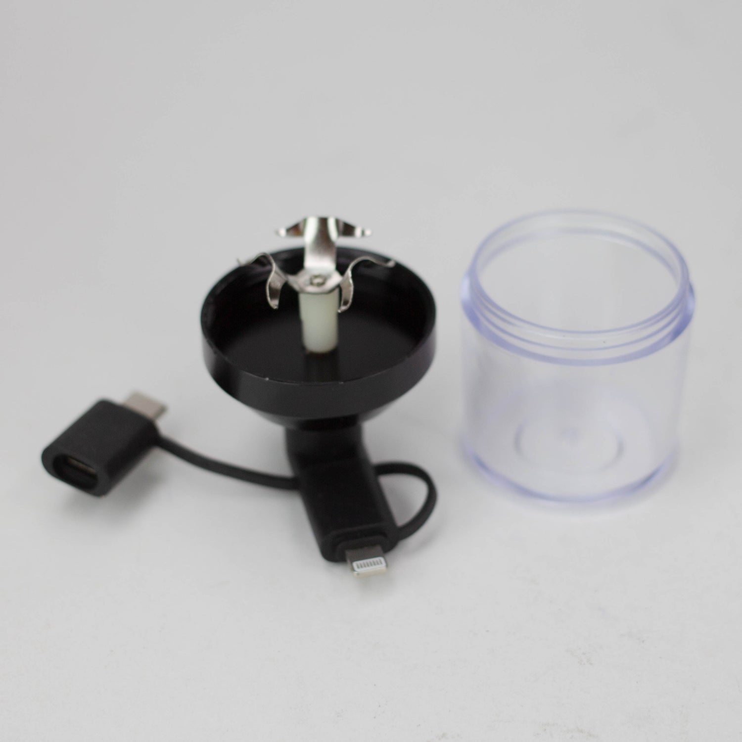 - The Phone-Power Electric Grinder Herb grinder is a dry herb grinder with automatic electric capabilities. Boasting a dual feature design, it also serves as a convenient storage device.