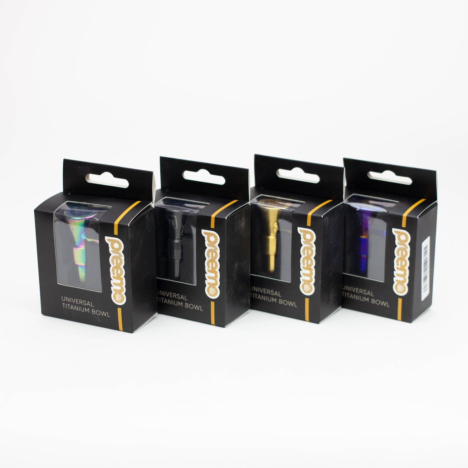 You can’t go wrong with a Preemo titanium bowl that fits any 14mm or 19mm joint. It has a 7-hole screen and a square tab. Constructed of 100% titanium, it is indestructible. Pick one up and you don’t need to get another bowl again… unless you’re a glass fanatic.The rainbow color option is anodized titanium created with an electrolytic finishing process