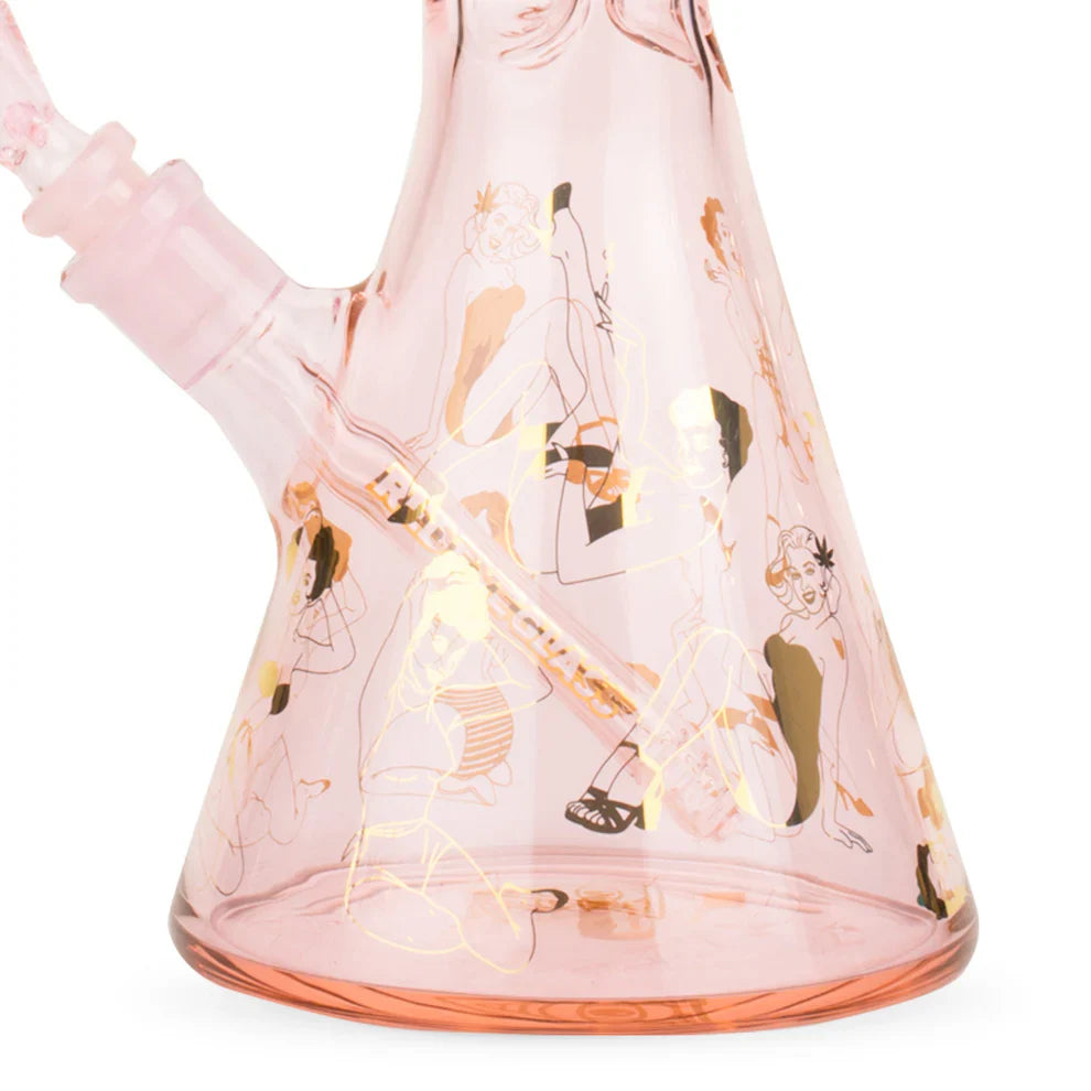 Bring a touch of retro style to your next session with the 15" Pin-Up Beaker Tube from Red Eye Glass®. This eye-catching water pipe features a bold, vintage-inspired full wrap pin-up girl decal, making it as stylish as it is functional. Crafted from 100% borosilicate glass, the Pin-Up Beaker Tube combines durability with timeless artistic appeal.