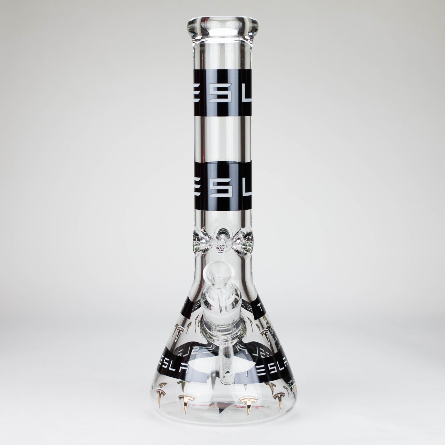 TSLA Glow in the Dark 14" 9 mm glass bong [PIP866] - Design A is backordered and will ship as soon as it is back in stock.