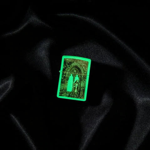 Renowned for her Gothic and darkly romantic themes, author and artist Victoria Frances has captivated audiences around the world with her hauntingly beautiful signature style. This eerie and ethereal design is applied to this Glow-in-the-Dark Green Matte lighter using our Color Image process. Comes packaged in a gift box. For optimal performance, fill with Zippo lighter fuel.